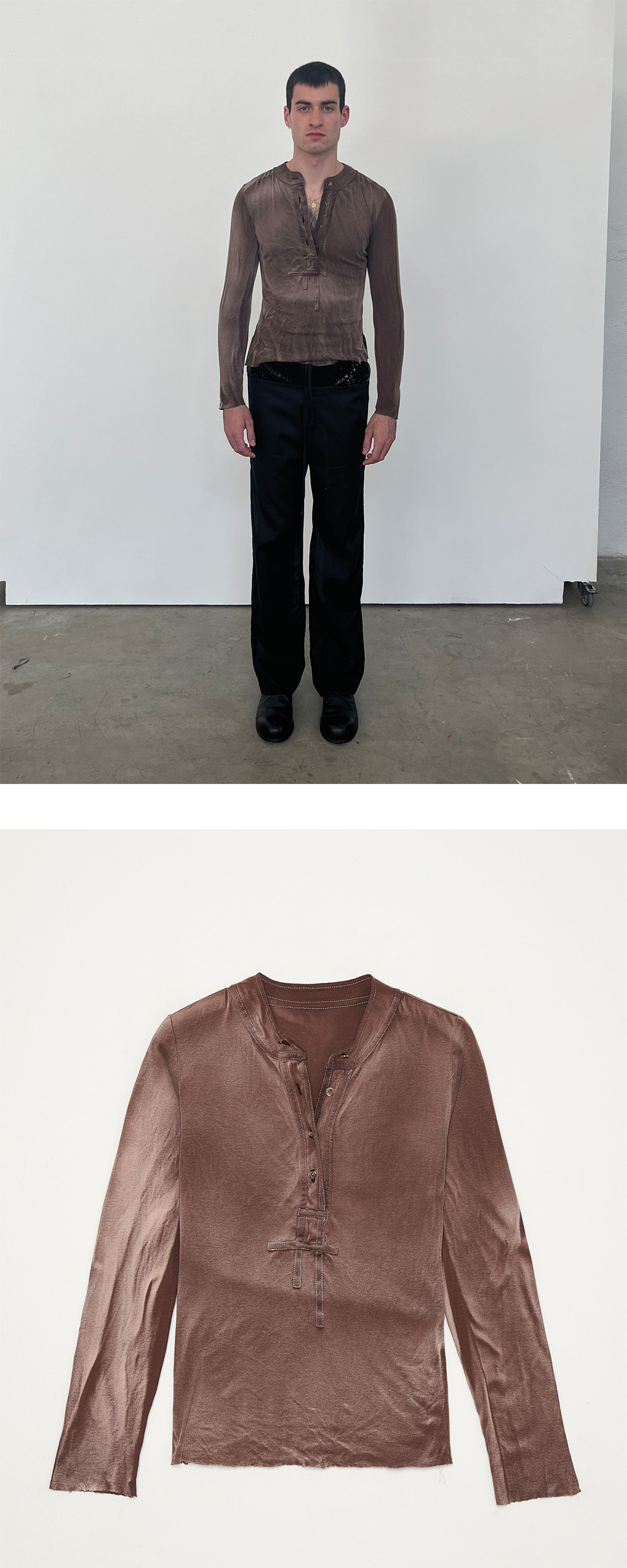에드워드 커밍 라이트 코튼 저지 타이어 트랙 롱 슬리브 헨리 워시드 브라운 - 25SS