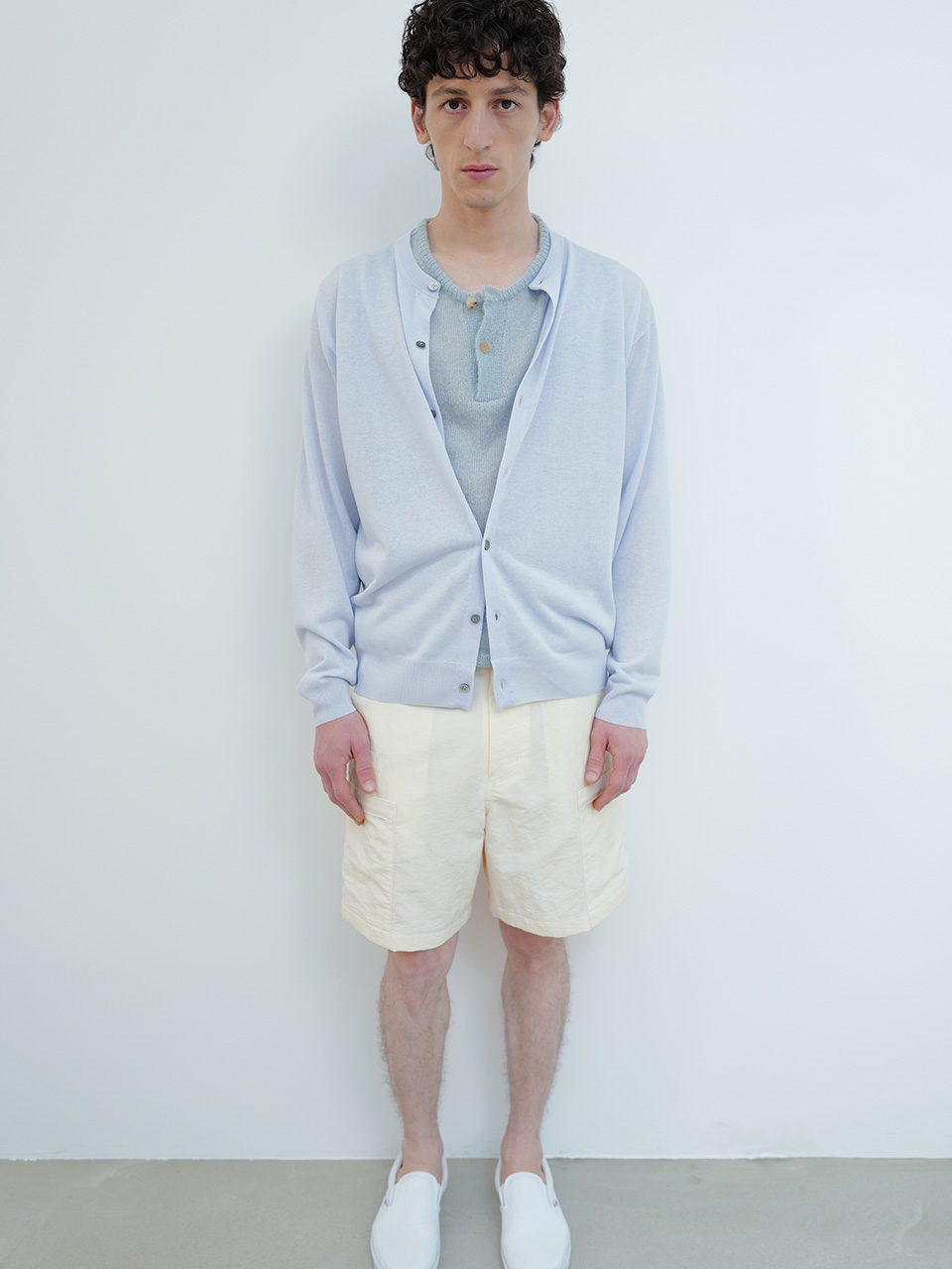 통기성이 우수한 린넨 혼방 소재로 제작되어 간절기 착용하기 적합한 니트 가디건입니다. 텐셀 소재가 함유되어 있어 터치감이 매우 부드럽고 은은한 광택감이 특징입니다. 여유있는 암홀 사이즈로 활동성을 높였으며 천연소재인 자개 단추로 마무리 하였습니다. 시어한 두께감과 간결한 디자인이 돋보이는 데일리 니트 웨어입니다. 46 어깨 50CM 가슴 56CM 총장 66CM 밑단 41CM 암홀 25CM 소매장 60CM 48 어깨 53CM 가슴 59CM 총장 67CM 밑단 44CM 암홀 25CM 소매장 60CM 50 어깨 56CM 가슴 62CM 총장 68CM 밑단 47CM 암홀 26CM 소매장 61CM 치수는 재는 위치에 따라 1-3cm 차이 생길 수 있습니다. 어두운 원단은 염색되었기 때문에 밝은 아이템과 착용 시 주의 부탁드립니다. DRY CLEAN ONLY 180cm 마른체형 모델 48 SIZE 착용