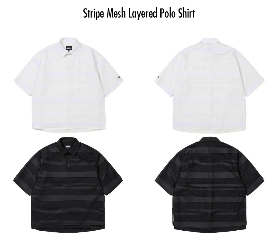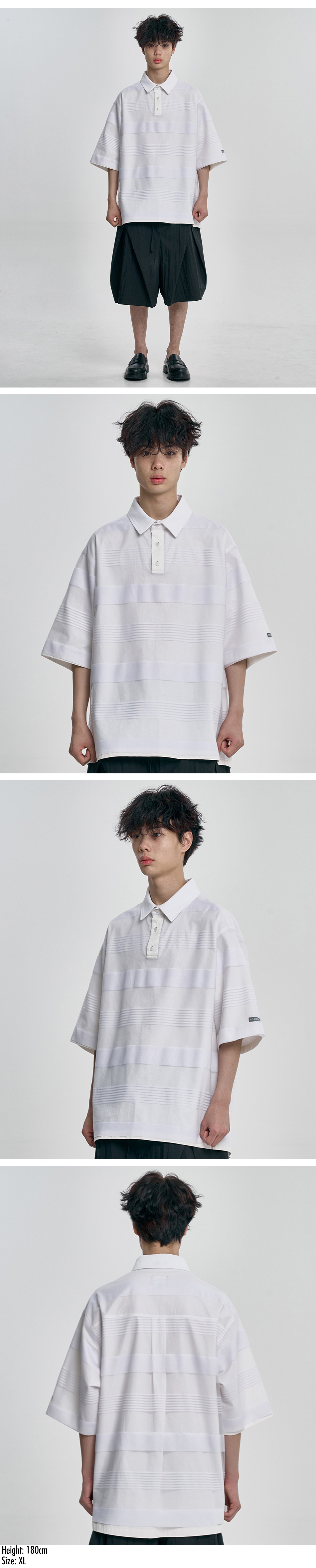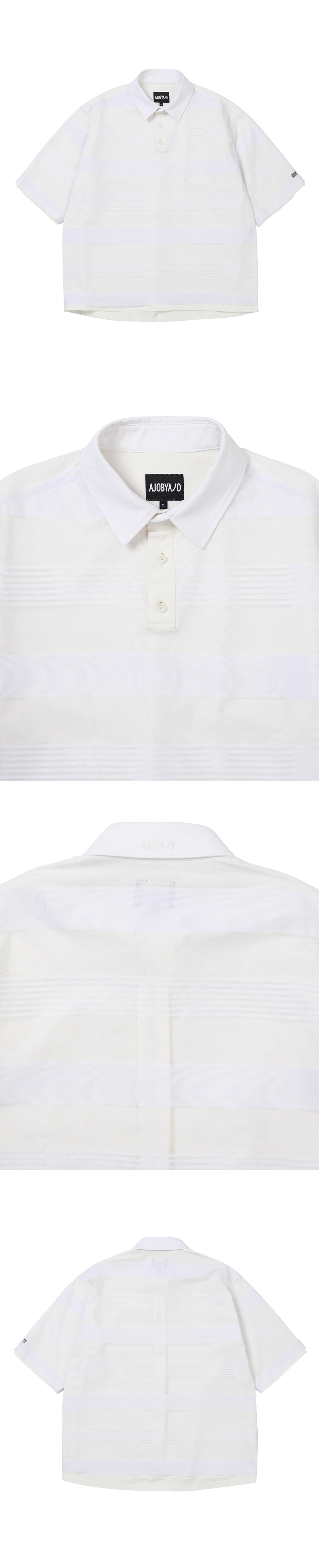 AJOBYAJO Stripe Mesh Layered Polo Shirt White