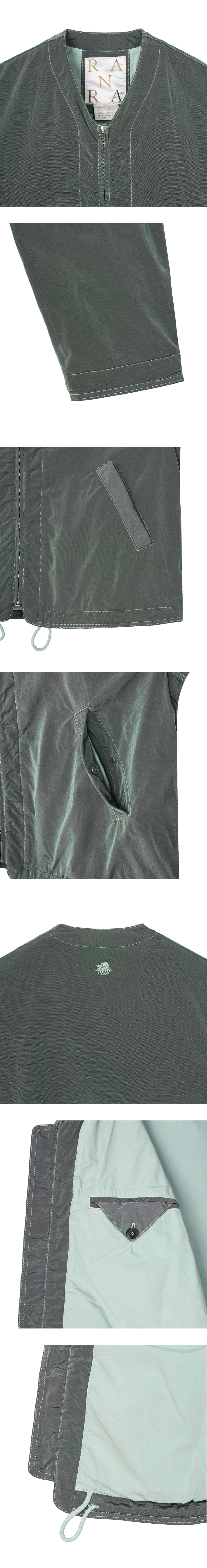 독특한 색감으로 포인트를 주기 좋은 란라의 어센더 캔버스 나일론 자켓 세이지입니다. -측면의 패치 포켓 -브이넥 디자인 -밑단 드로우스트링 디테일