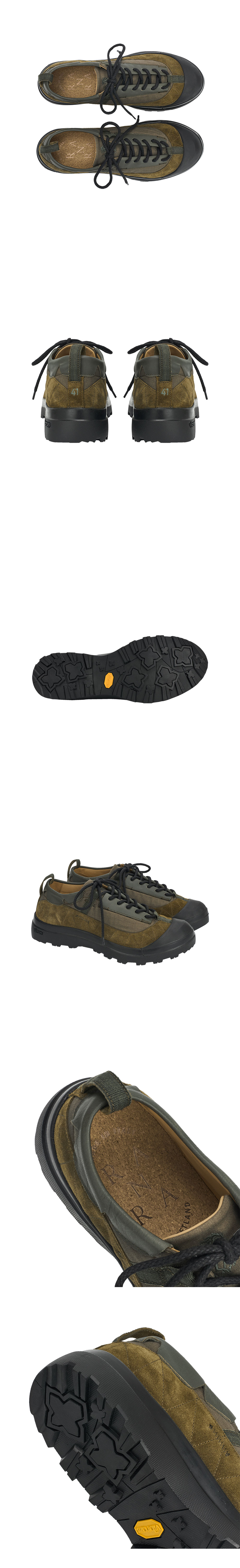 다양한 지형에서 탁월한 접지력과 안정성을 제공하는 란라의 칼트 마티니 올리브입니다. - made in Italy - 100% 송아지 가죽 - 내구성과 견고함을 향상시키는 대비 스티칭과 패널링 - 보호 기능을 더해주는 발가락과 뒤꿈치 부분의 고무