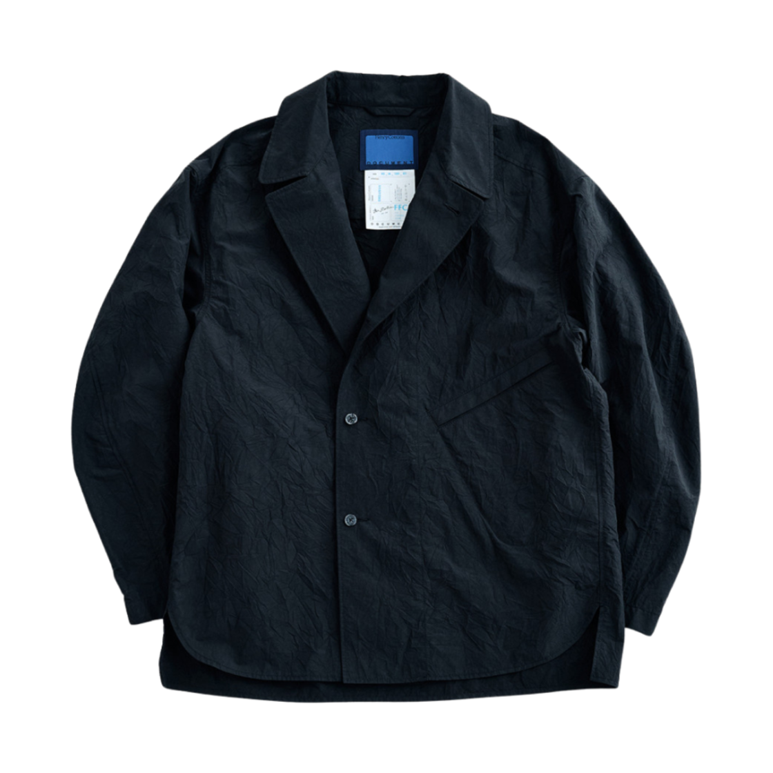 헨리 코튼 x 도큐먼트 플라이 피싱 클럽 왁스드 크링클드 셔팅 자켓 블랙