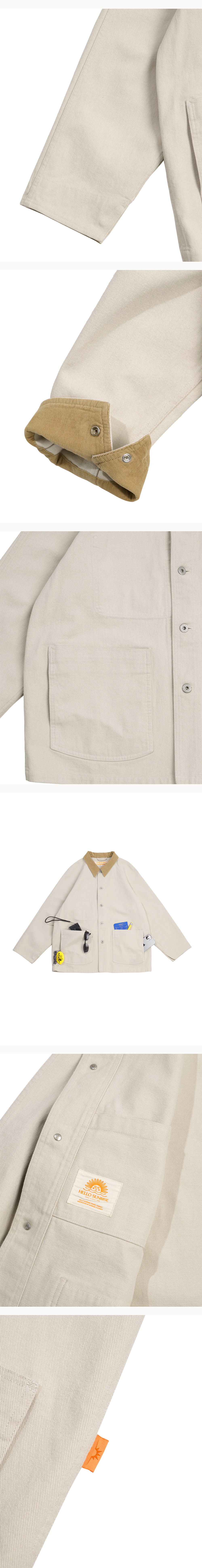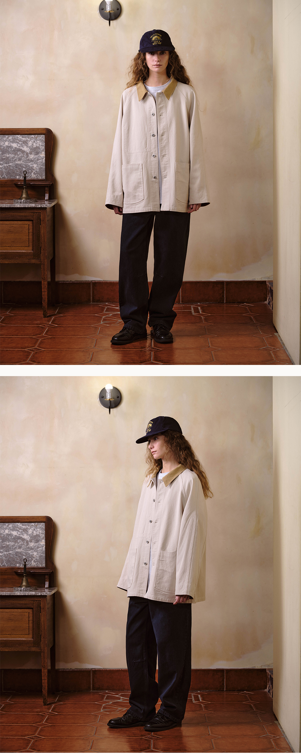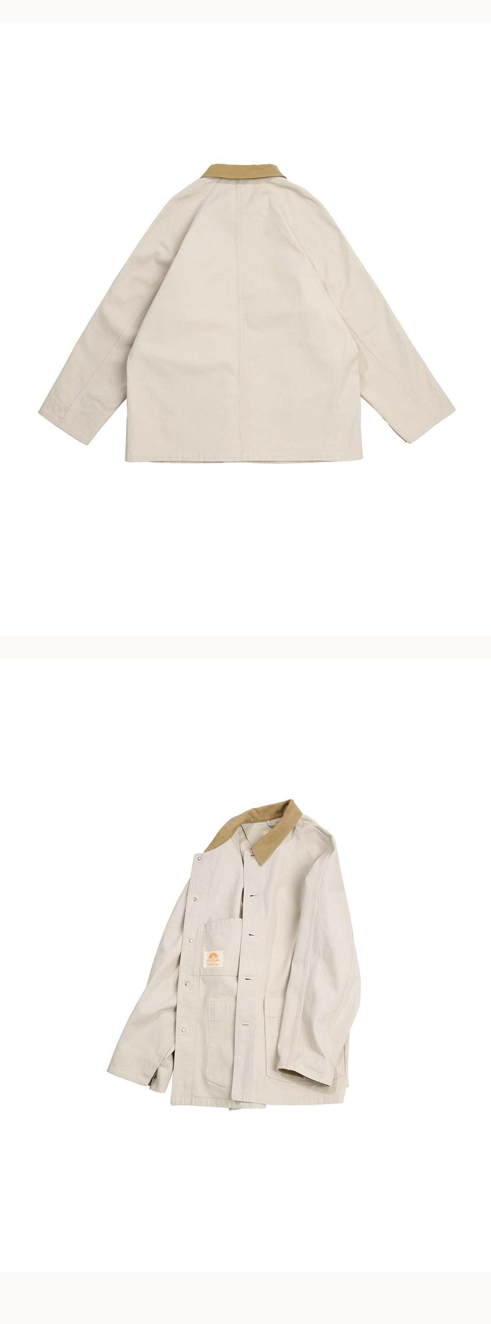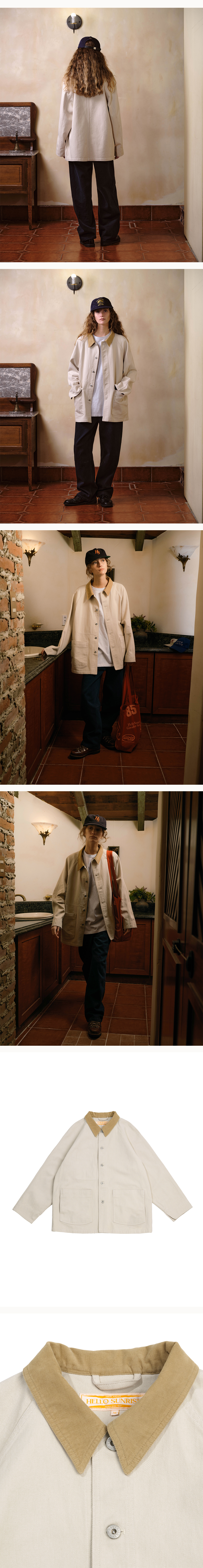 카라 배색 원단 적용한 워크자켓입니다. - 부드러운 터치감의 코튼 소재 사용 - 워싱처리로 빈티지한 느낌 - 사이드 헬로선라이즈 포인트 라벨 적용 - 카라부분 코듀로이 배색 원단 적용 - 여유로운 핏으로 편안한 착용감 * Model : 174cm / Size : Medium * 측정 기준에 따라 1-2cm의 차이가 있을 수 있습니다. * Cotton 100% Made in Korea