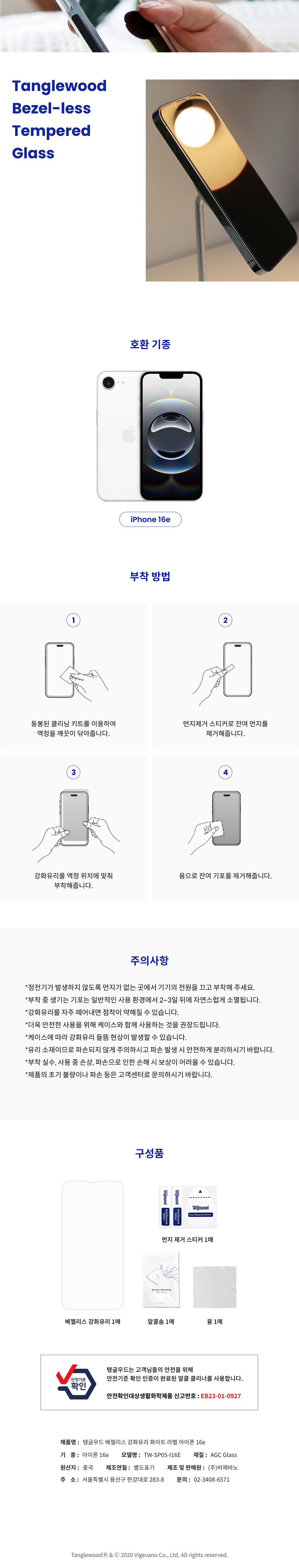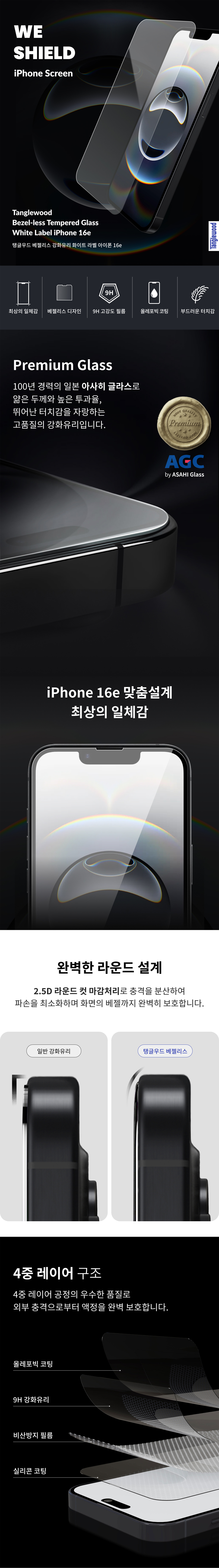 탱글우드 베젤리스 강화유리 화이트 라벨 아이폰 16e