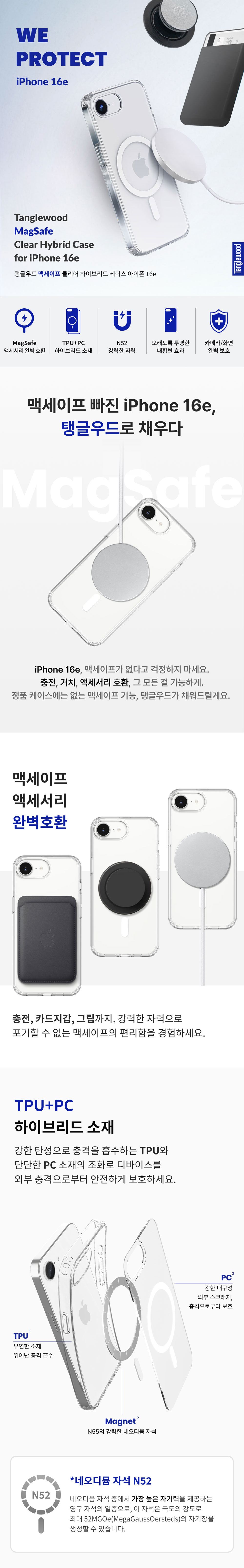 탱글우드 맥세이프 클리어 하이브리드 케이스 아이폰 16e
