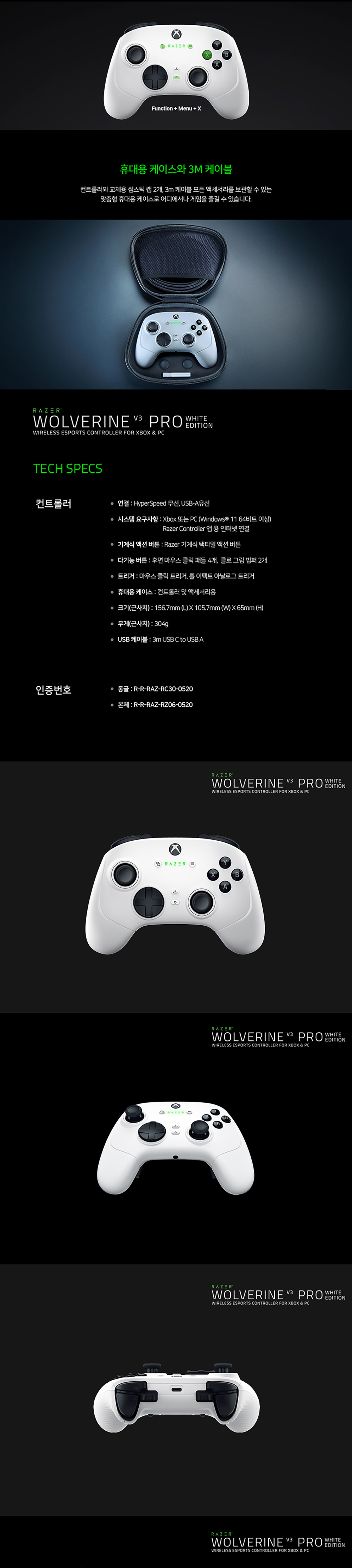 레이저 울버린 V3 프로 화이트 XBOX공식라이센스 PC호환 Wolverine V3 Pro White XBOX 무선 컨트롤러