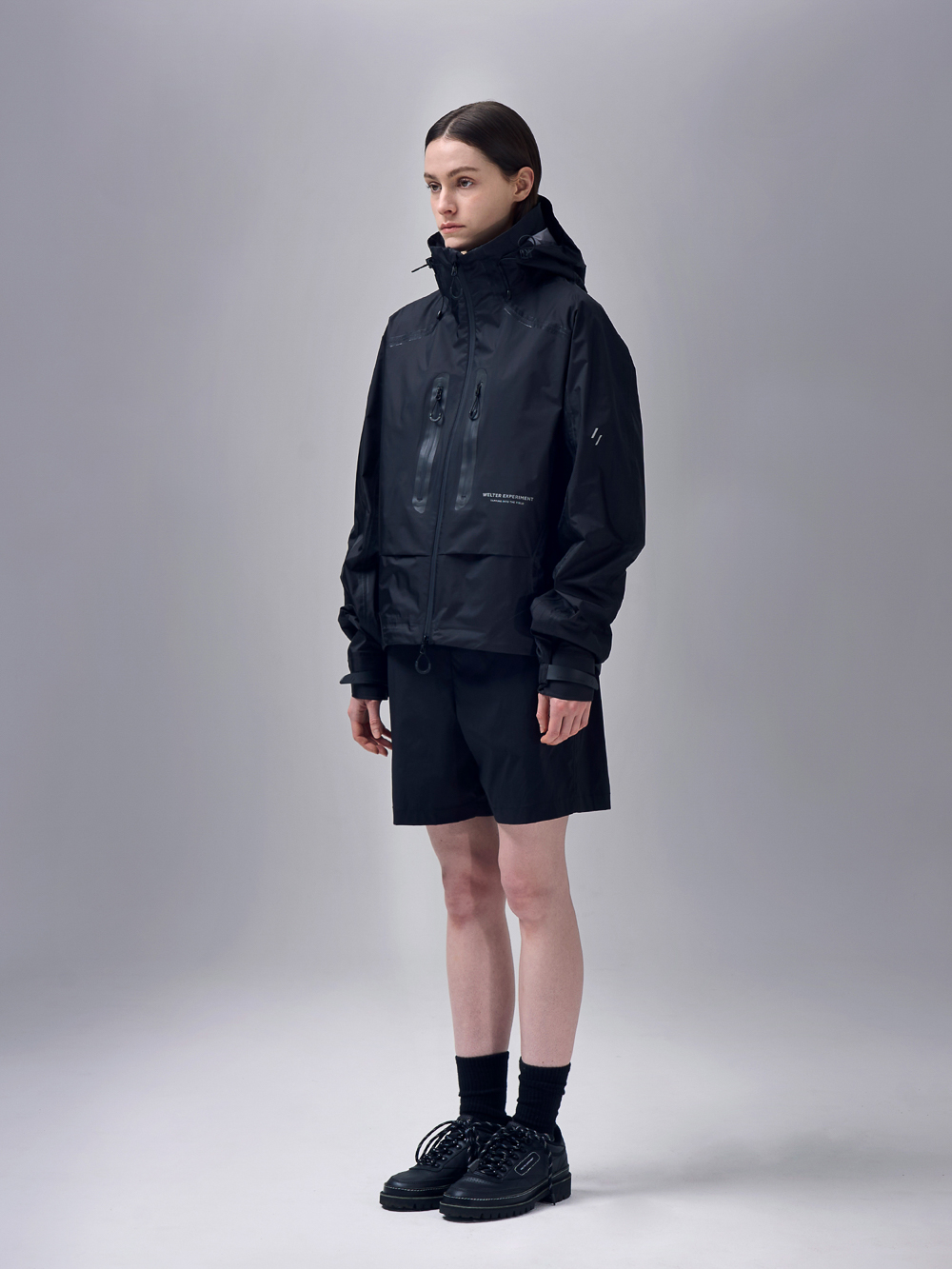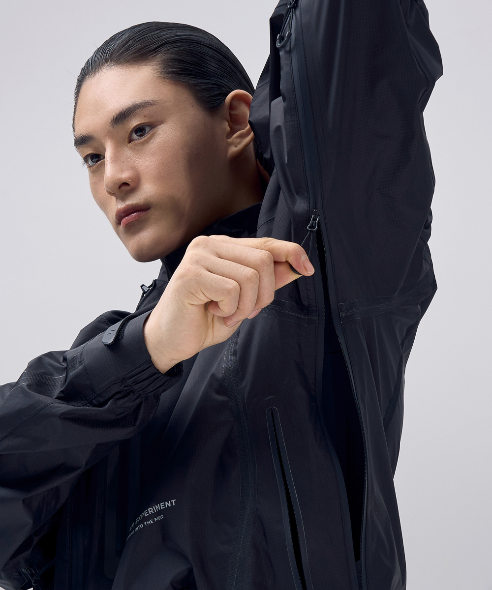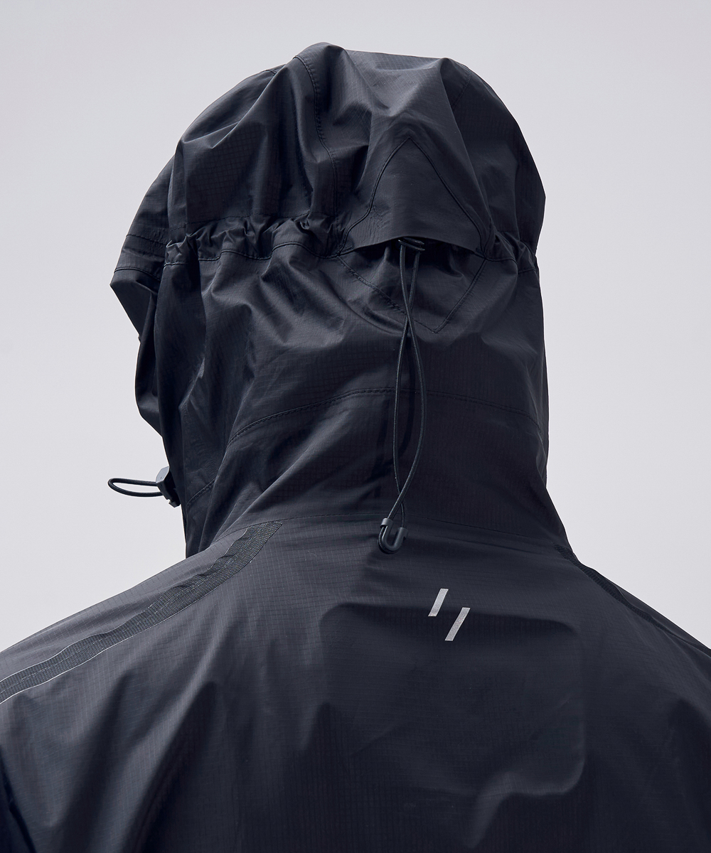 [ INSTRUCTION ] 자체개발 완전방수 3 layer 원단 (10,000mm / 10,000g / m2 / 24hr) 자체개발 경량 방수지퍼 외부 수압에 강한 심실링 재귀반사(빛반사) 필름 (소매 / 지퍼 / 로고) 사용자화 조절 기능 (밑단 / 소매 / 후드) 수납성을 최대화한 입체 포켓 공기순환(벤틸레이션)용 56cm 지퍼 2개 활동성을 높인 입체 패턴