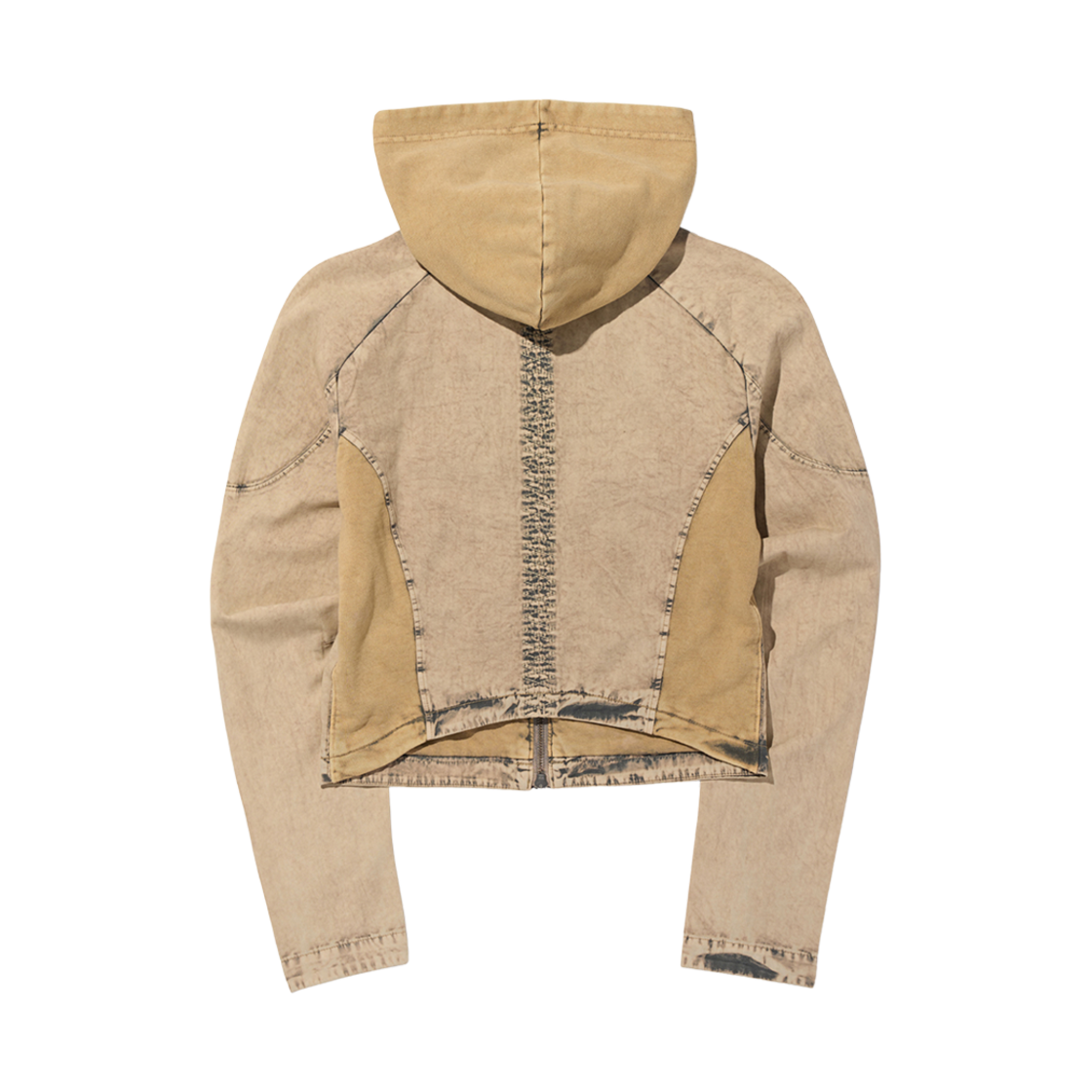 (W) 미스치프 블리치드 컷 오프 후드 자켓 블리치드 머드