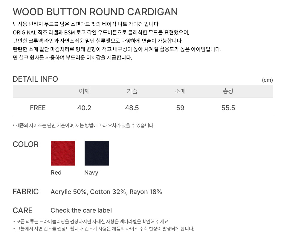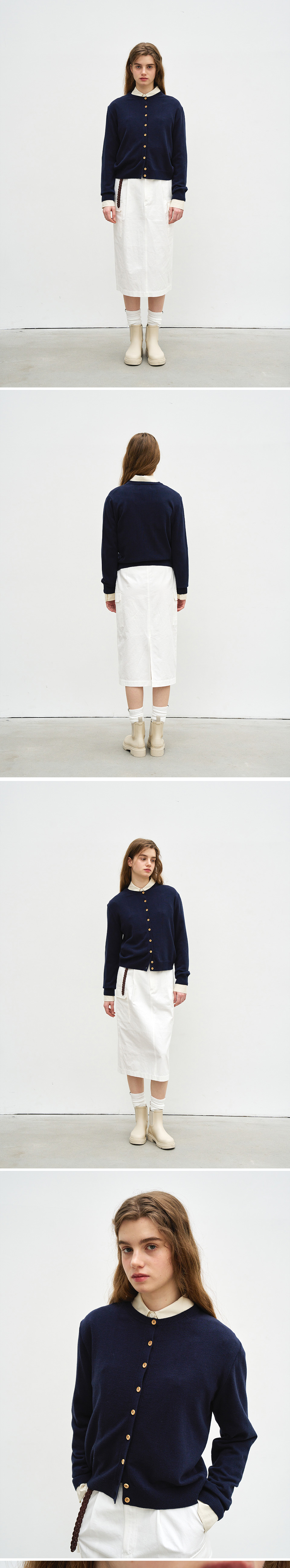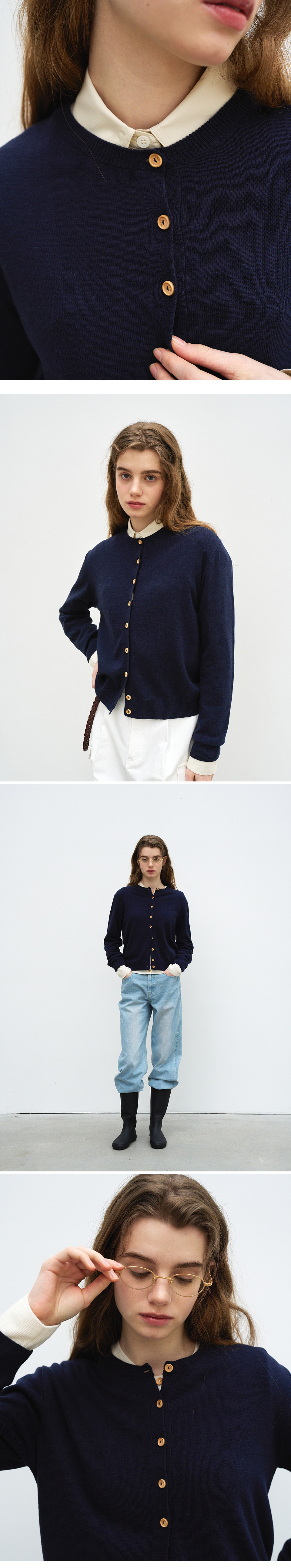 벤시몽 우드 버튼 라운드 가디건 네이비