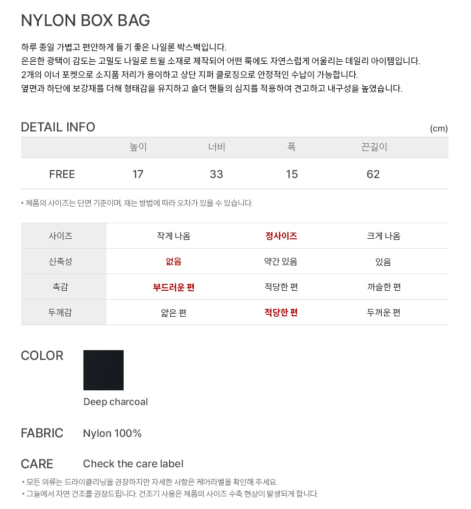 벤시몽 나일론 박스 백 딥 차콜
