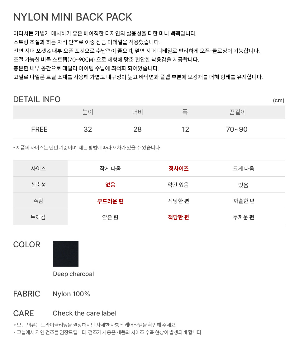 벤시몽 나일론 미니 백팩 딥 차콜