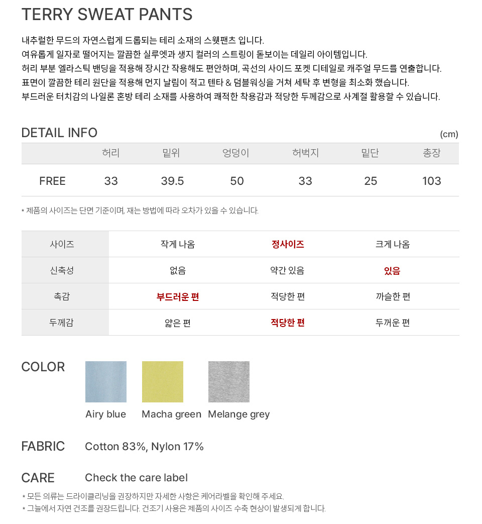 벤시몽 테리 스웻 팬츠 에어리 블루