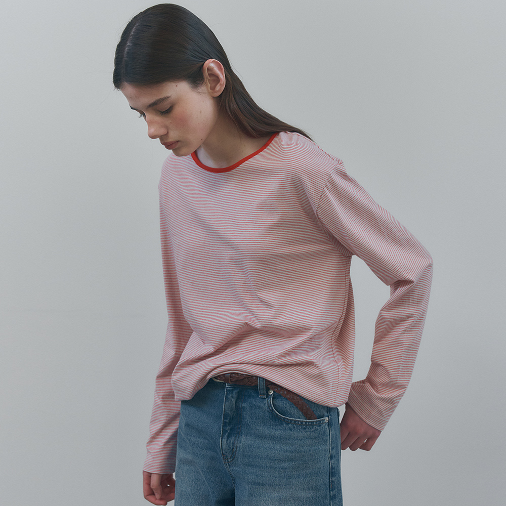 벤시몽 컬러링 스트라이프 롱슬리브 레드