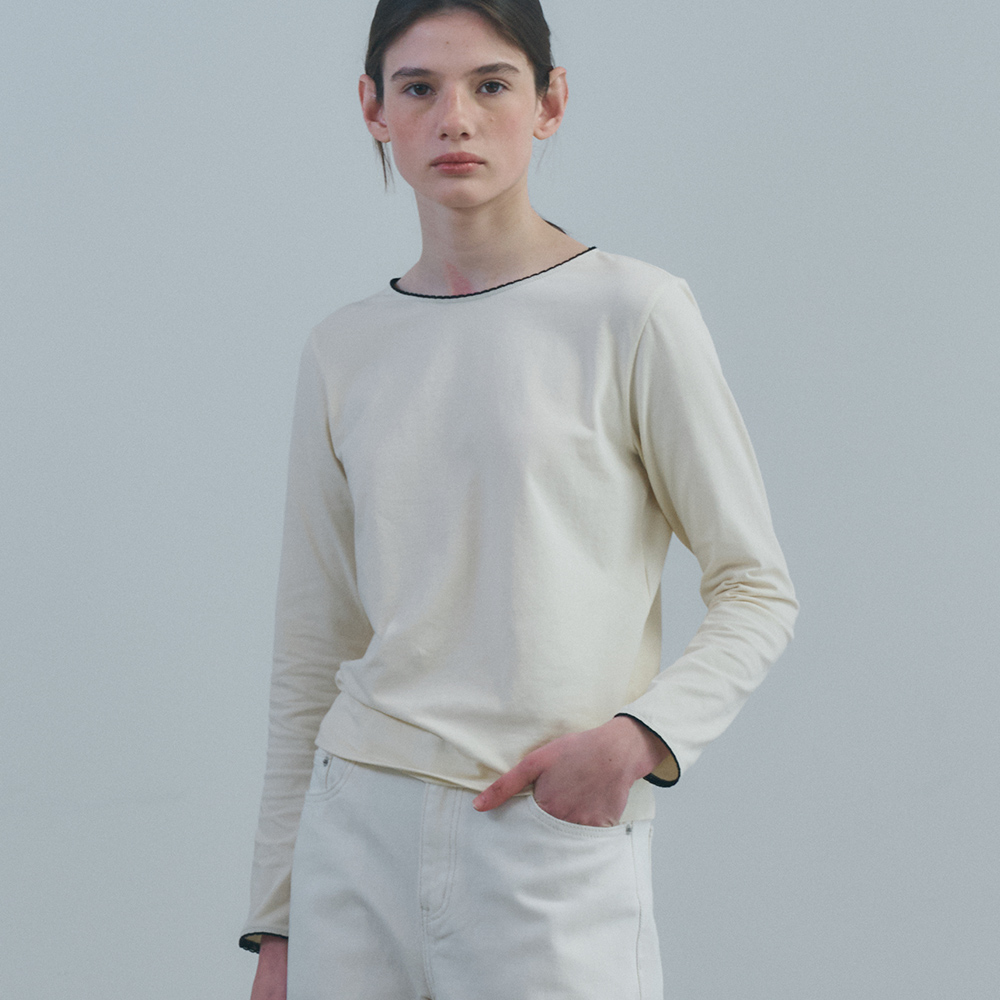 벤시몽 레이스 라운드 롱슬리브 버터 크림
