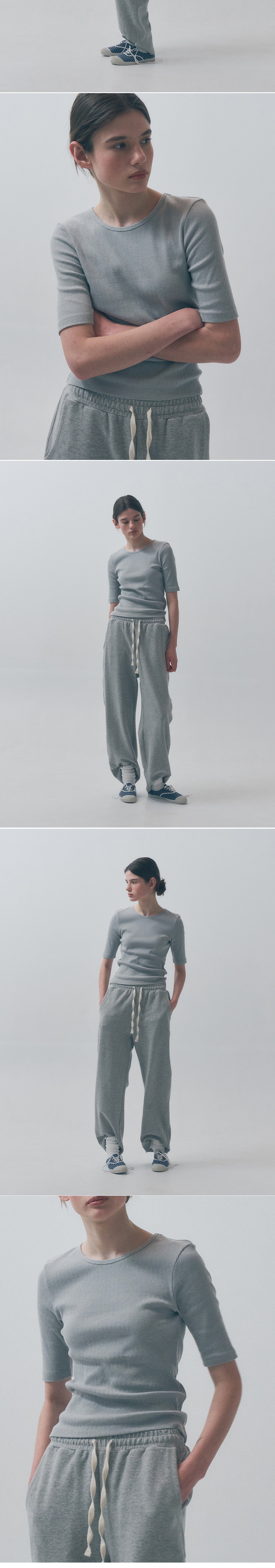 벤시몽 립드 니트 티셔츠 그레이
