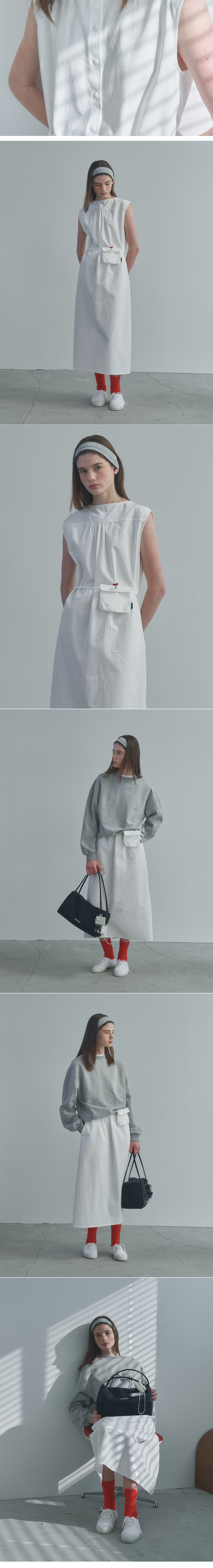 벤시몽 코튼 맥시 슬리브리스 드레스 화이트