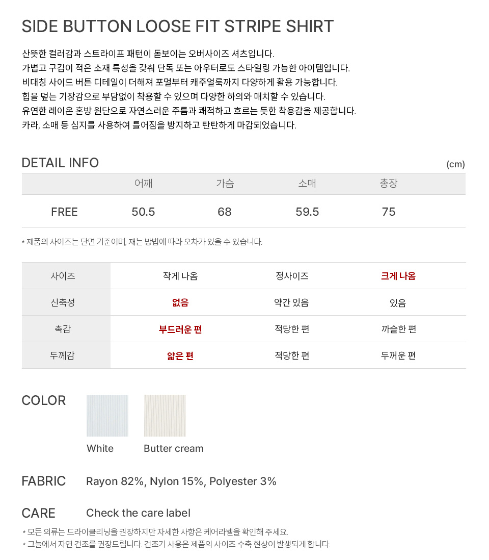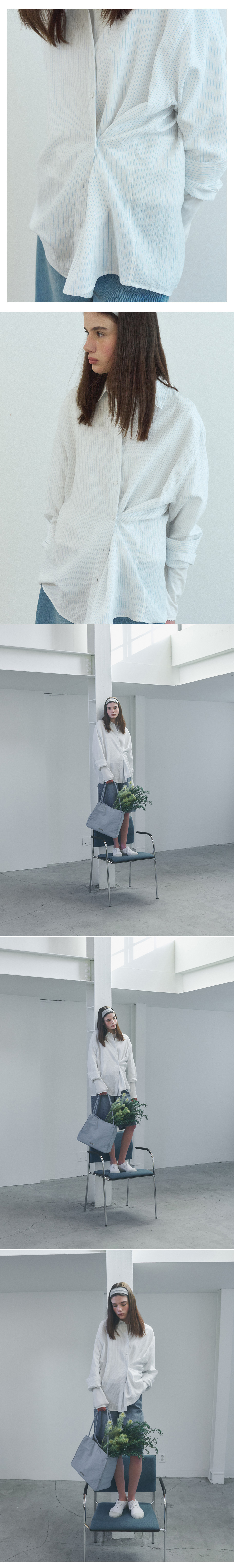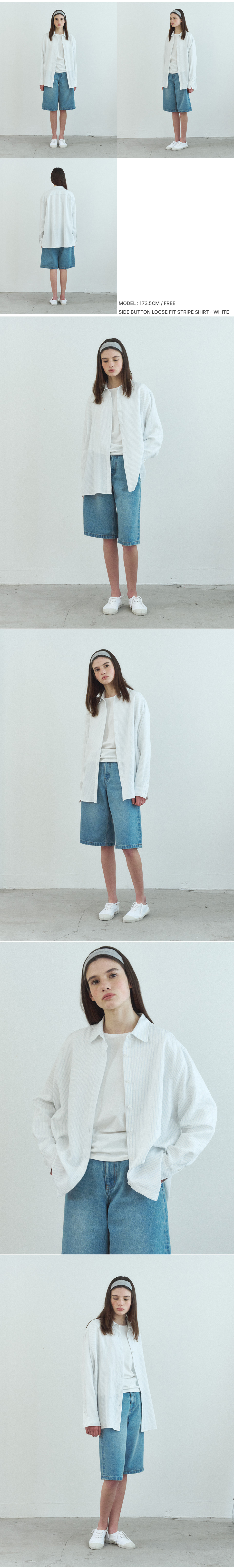 벤시몽 사이드 버튼 루즈핏 스트라이프 셔츠 화이트