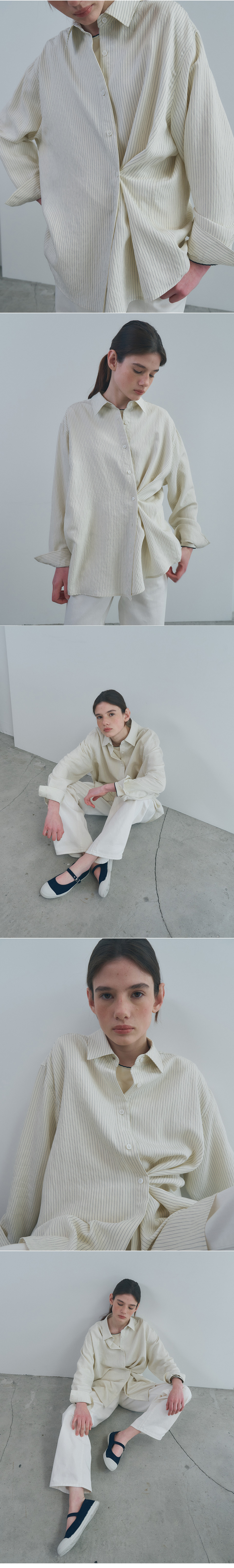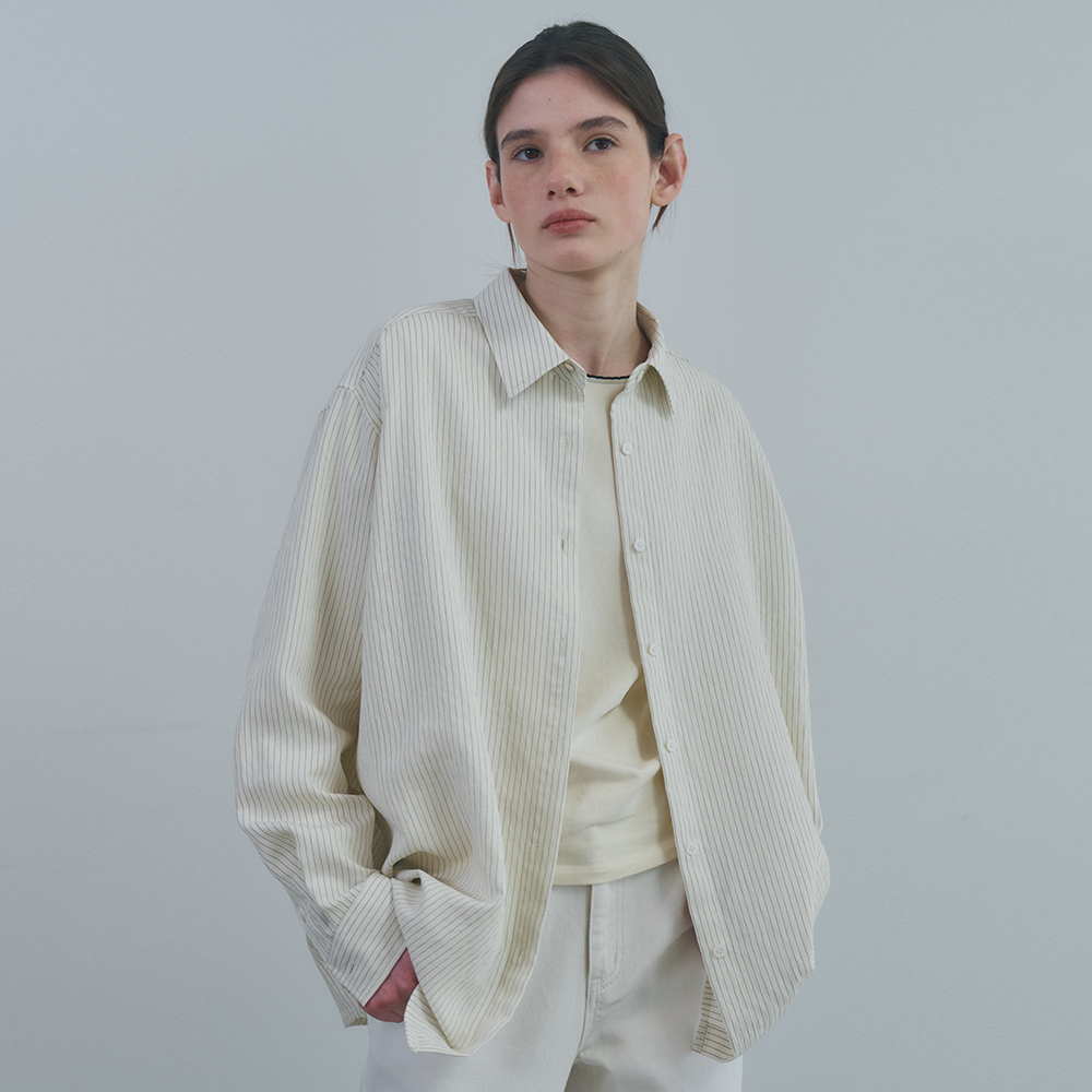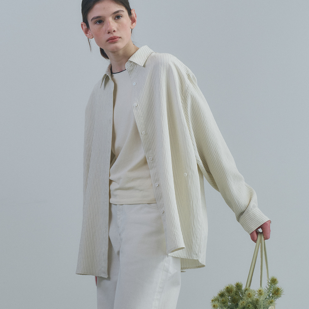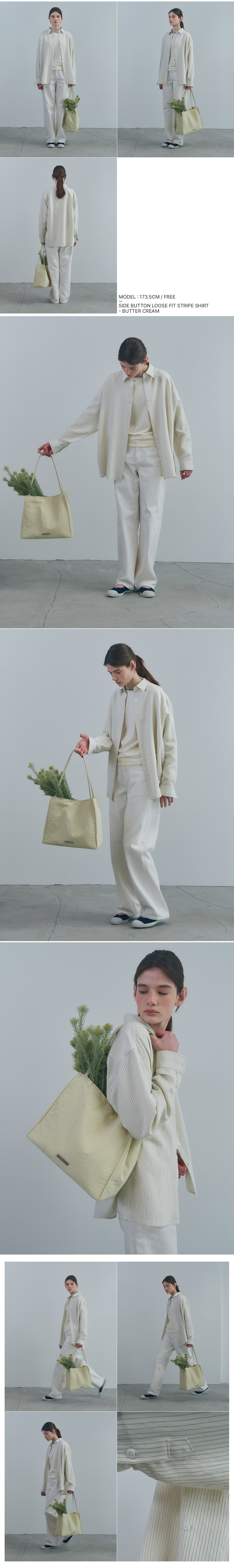 벤시몽 사이드 버튼 루즈핏 스트라이프 셔츠 버터 크림