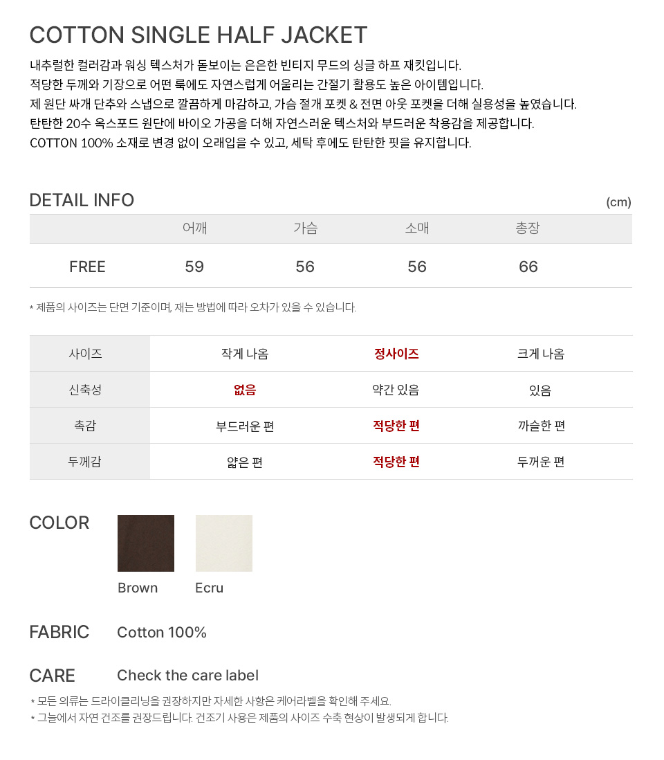 벤시몽 코튼 싱글 하프 자켓 에크루