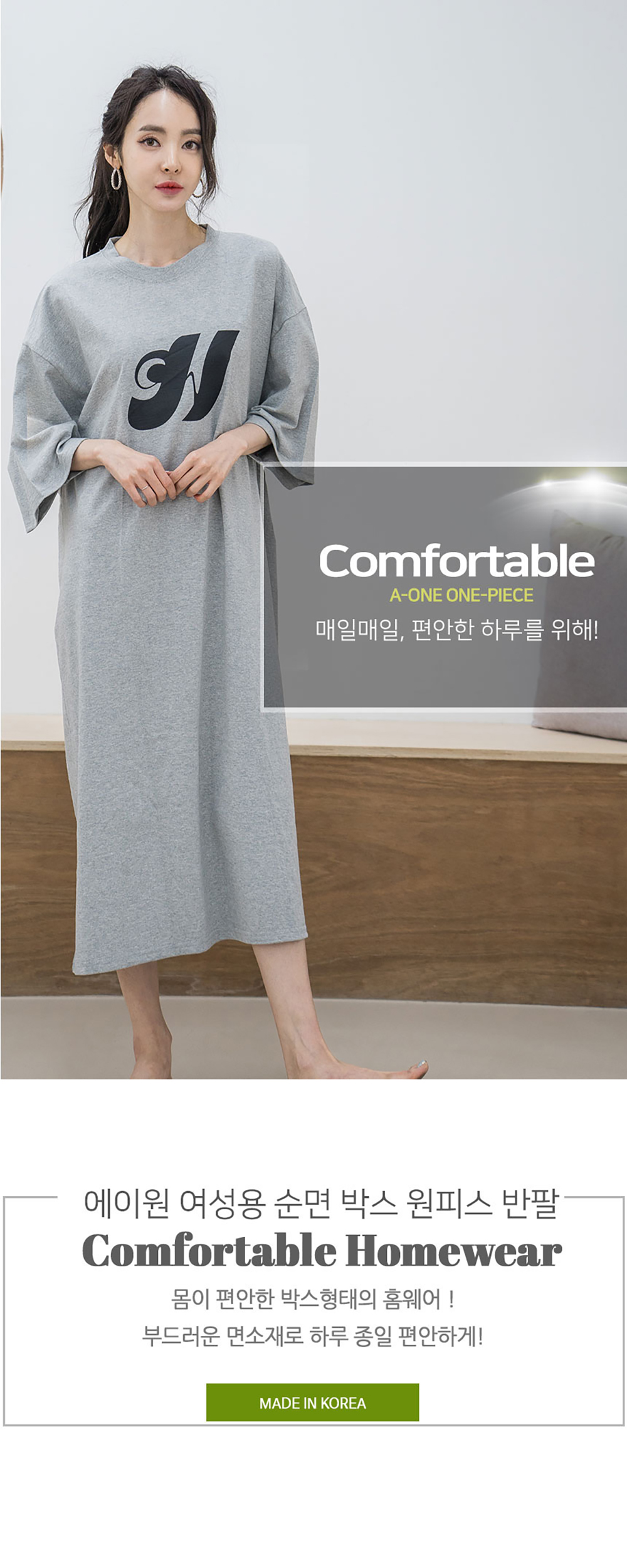 (W) 에이원 순면 빅사이즈 원피스 파자마 화이트