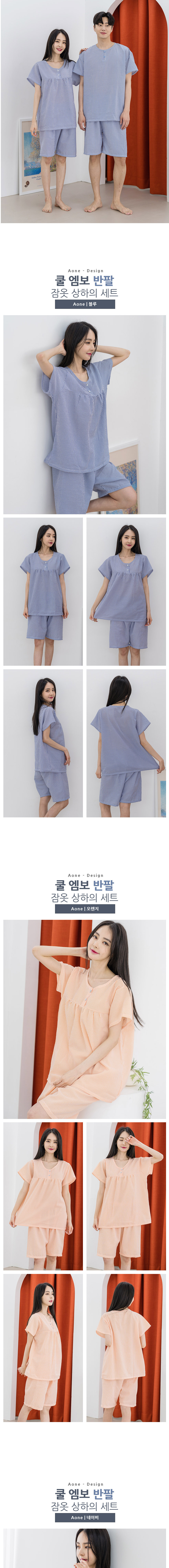 (W) 에이원 쿨 엠보 반팔 잠옷 세트 오렌지
