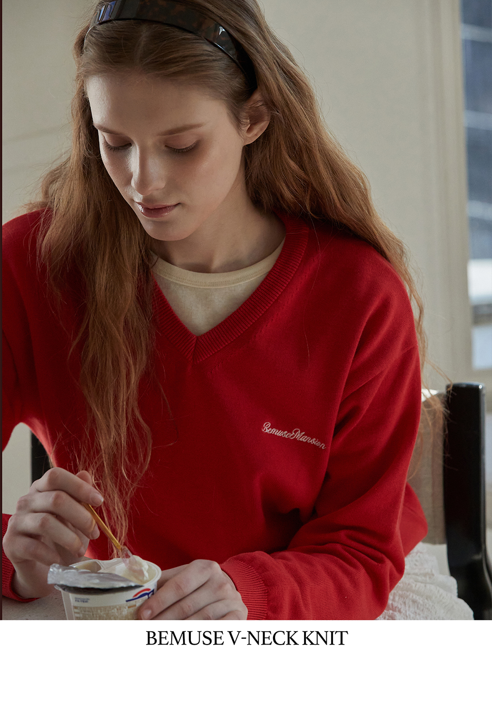 비뮤즈맨션 비뮤즈 V넥 니트 레드
