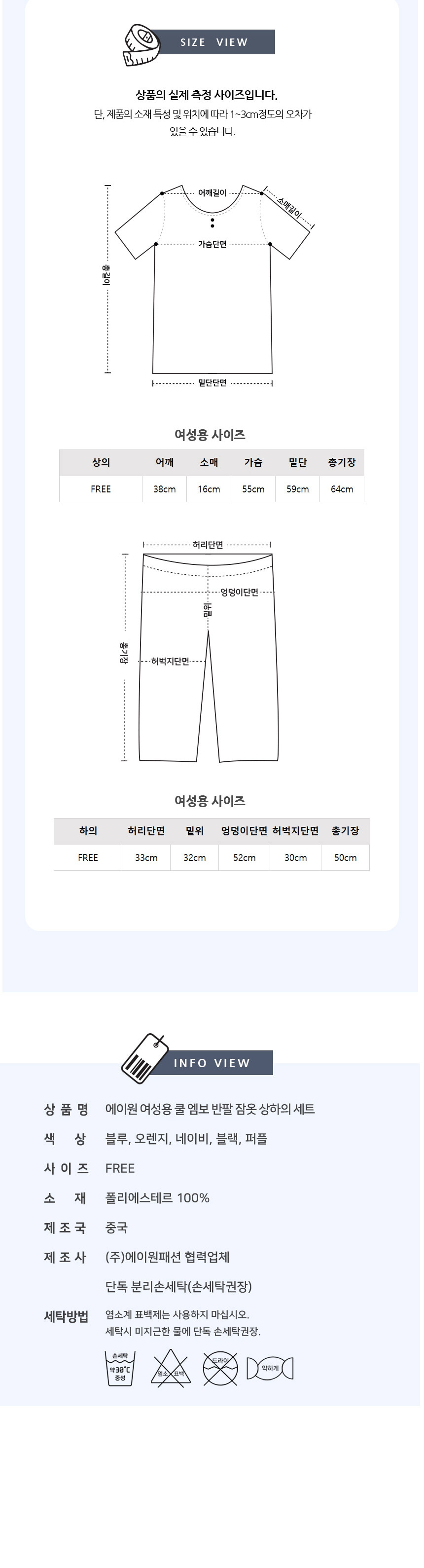 (W) 에이원 쿨 엠보 반팔 잠옷 세트 블랙