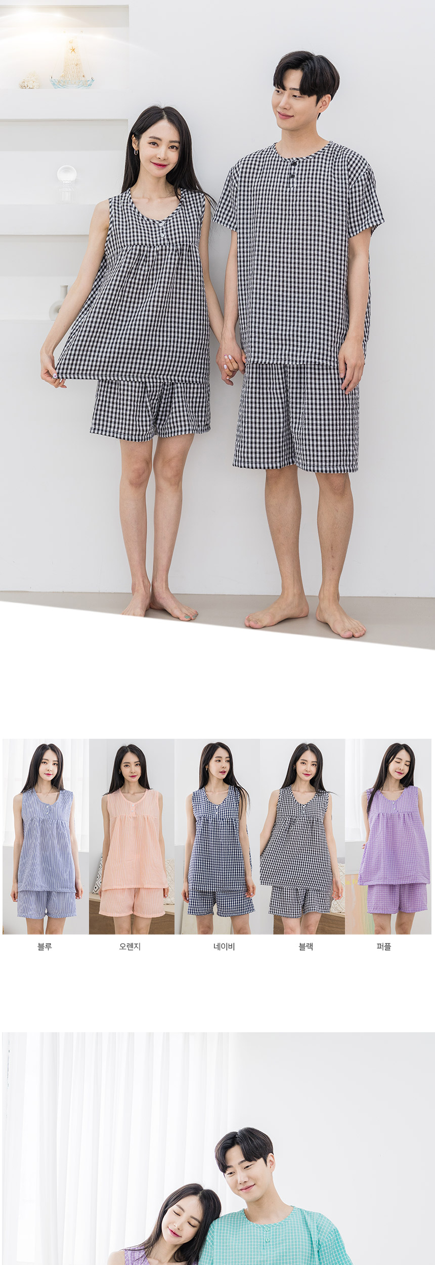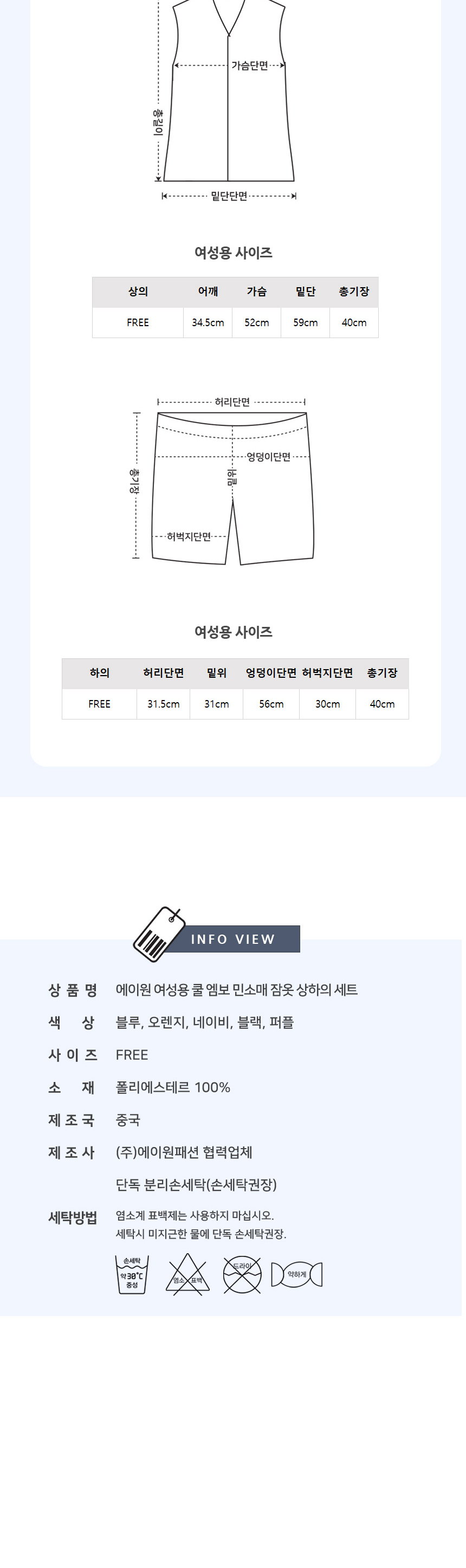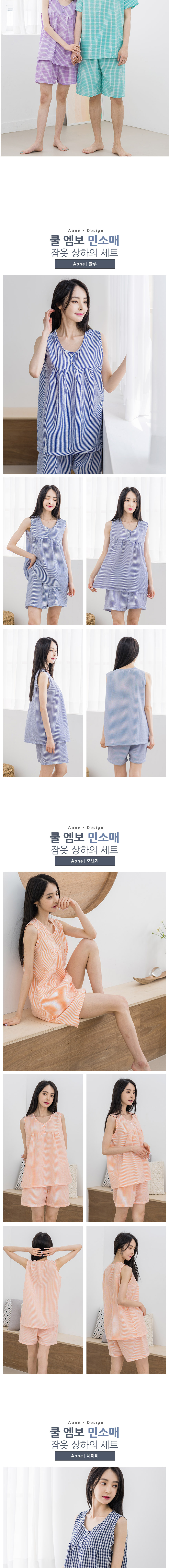 (W) 에이원 쿨 엠보 민소매 잠옷 세트 퍼플