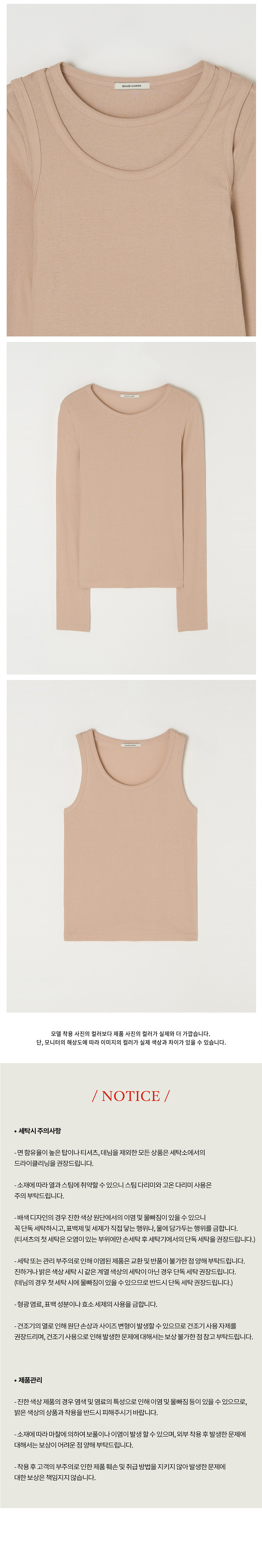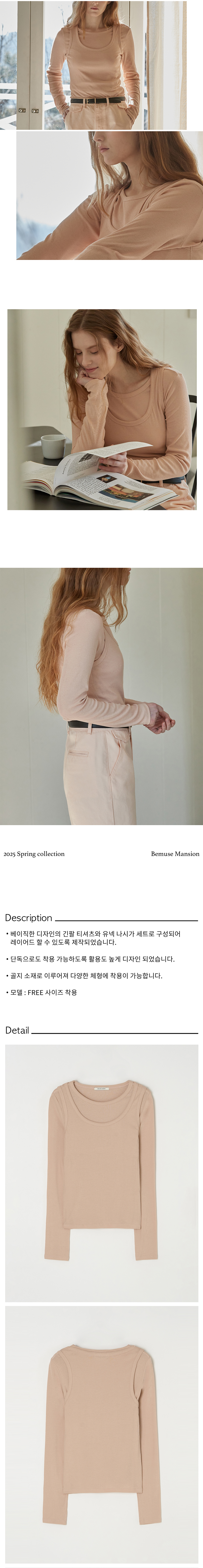 비뮤즈맨션 U넥 립 레이어드 티셔츠 세트 살몬 피치