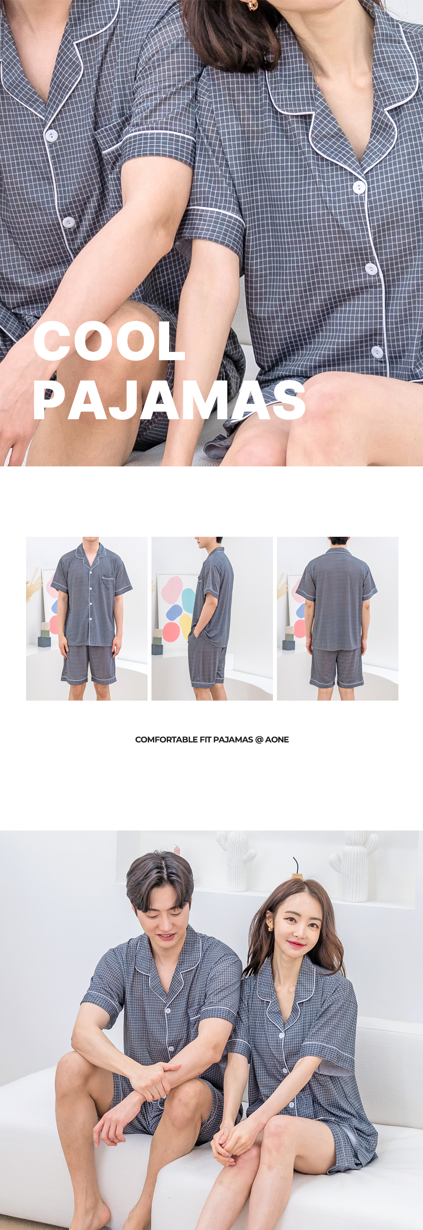 에이원 냉감 체크 반팔 잠옷 세트 네이비체크