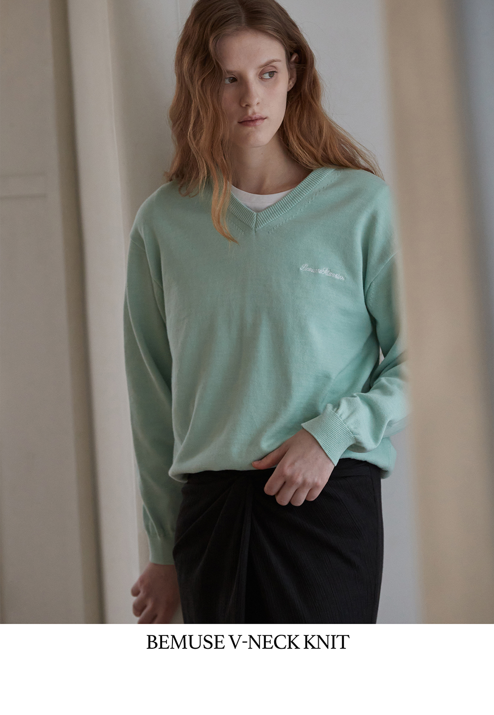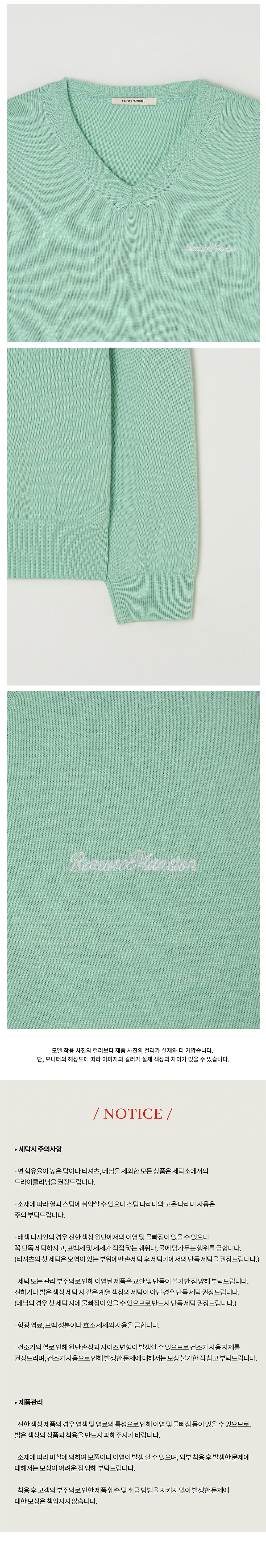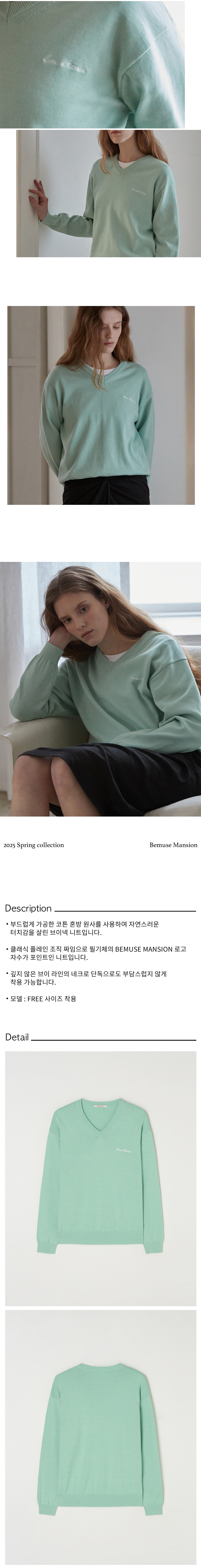 비뮤즈맨션 비뮤즈 V넥 니트 민트