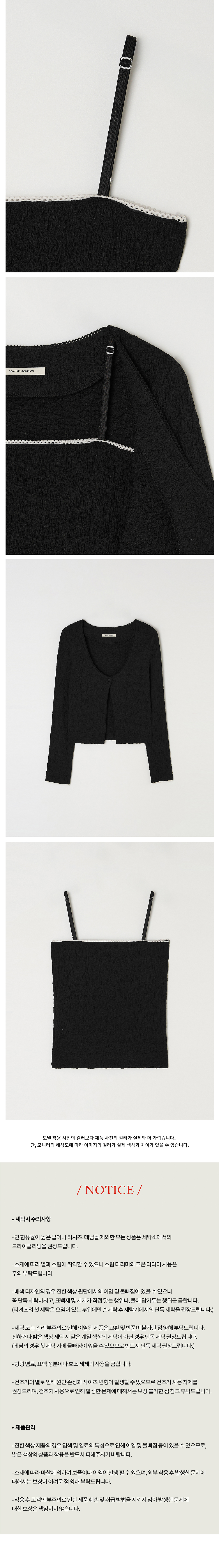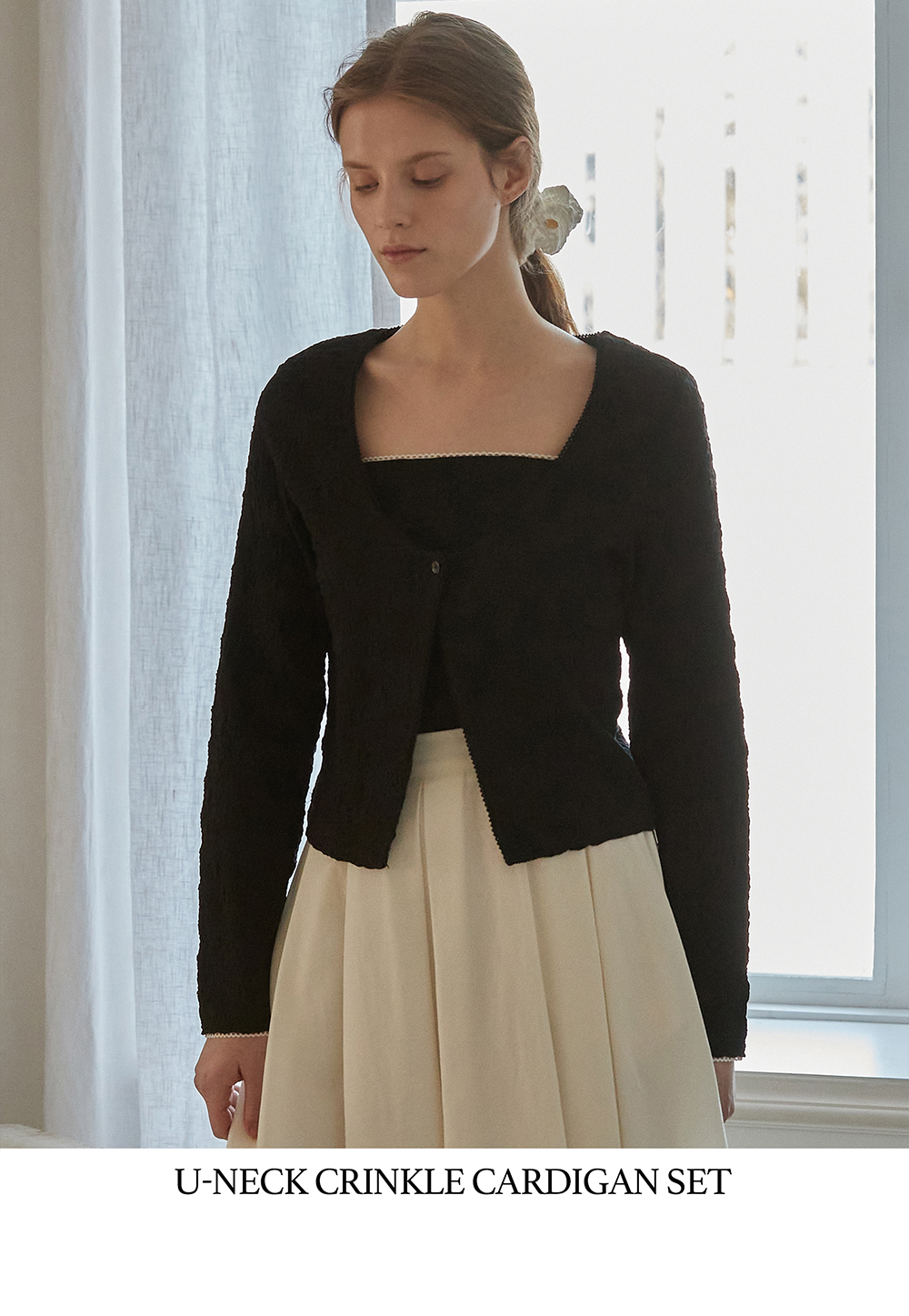 BEMUSE MANSION U-neck crinkle cardigan set Black