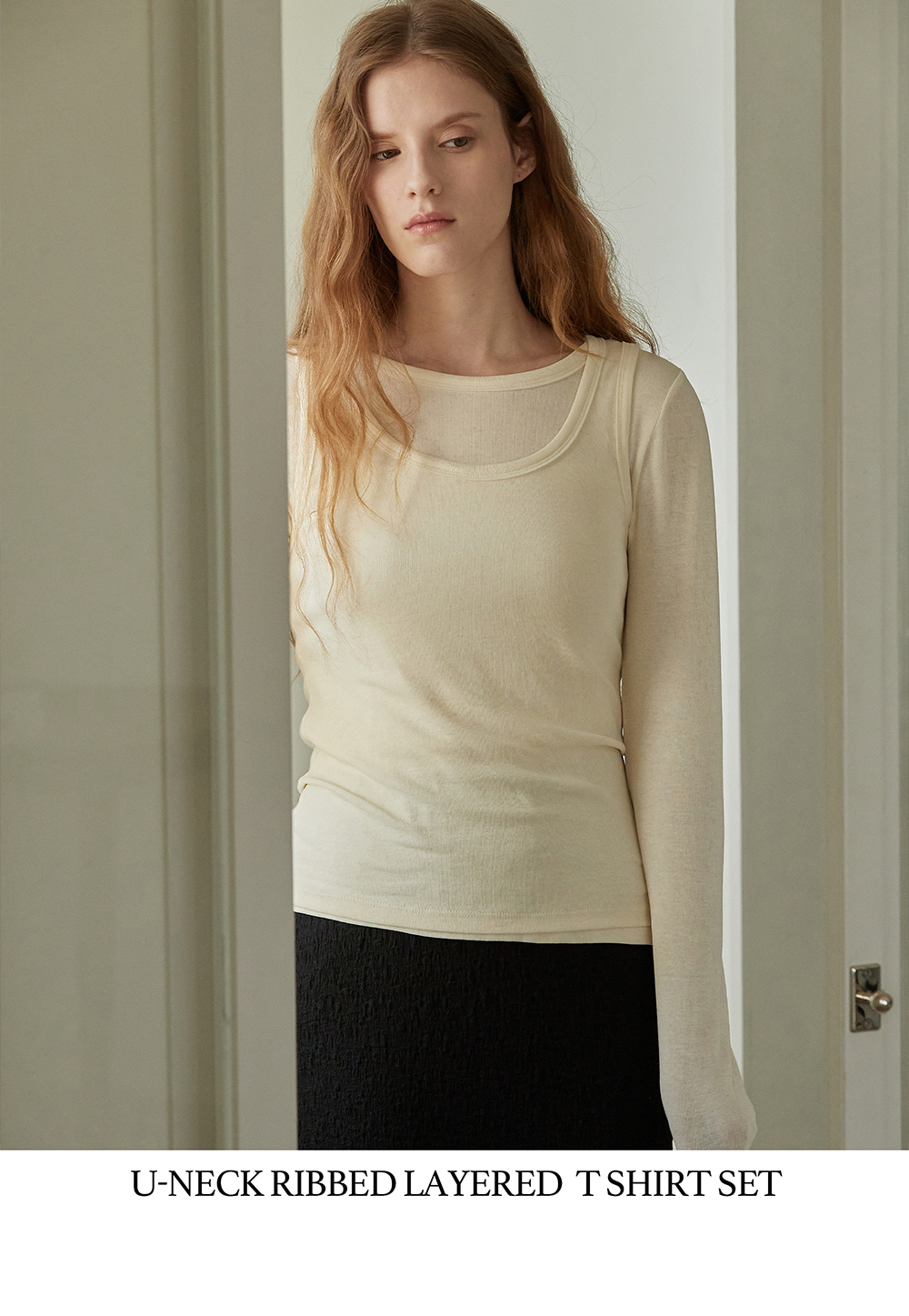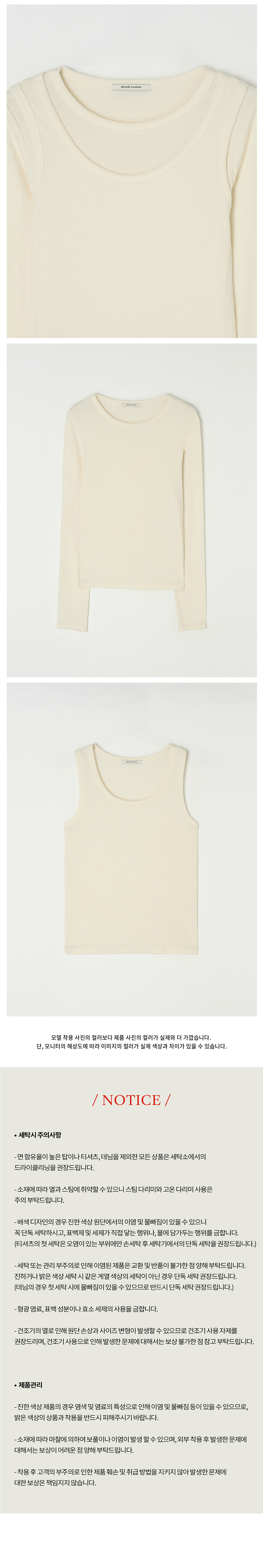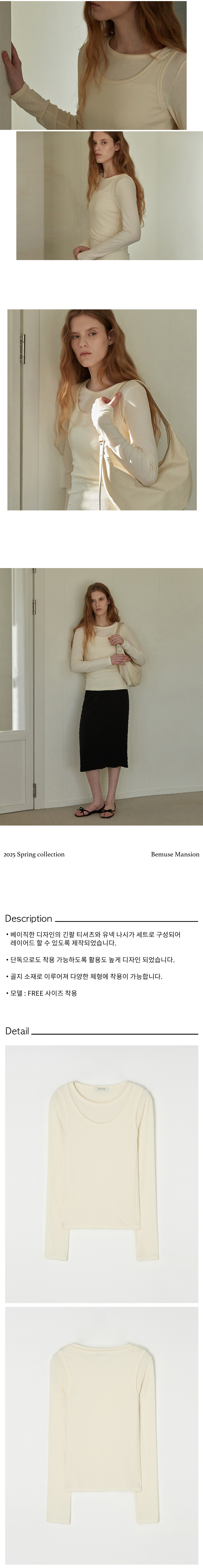 비뮤즈맨션 U넥 립 레이어드 티셔츠 세트 아이보리
