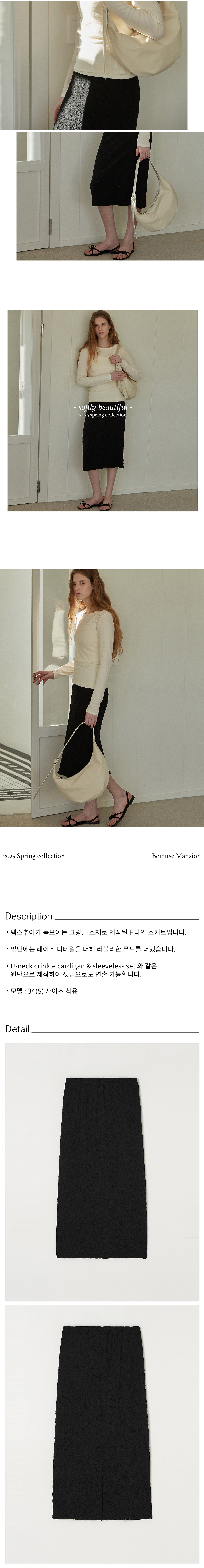 비뮤즈맨션 크링클 밴딩 H라인 스커트 블랙