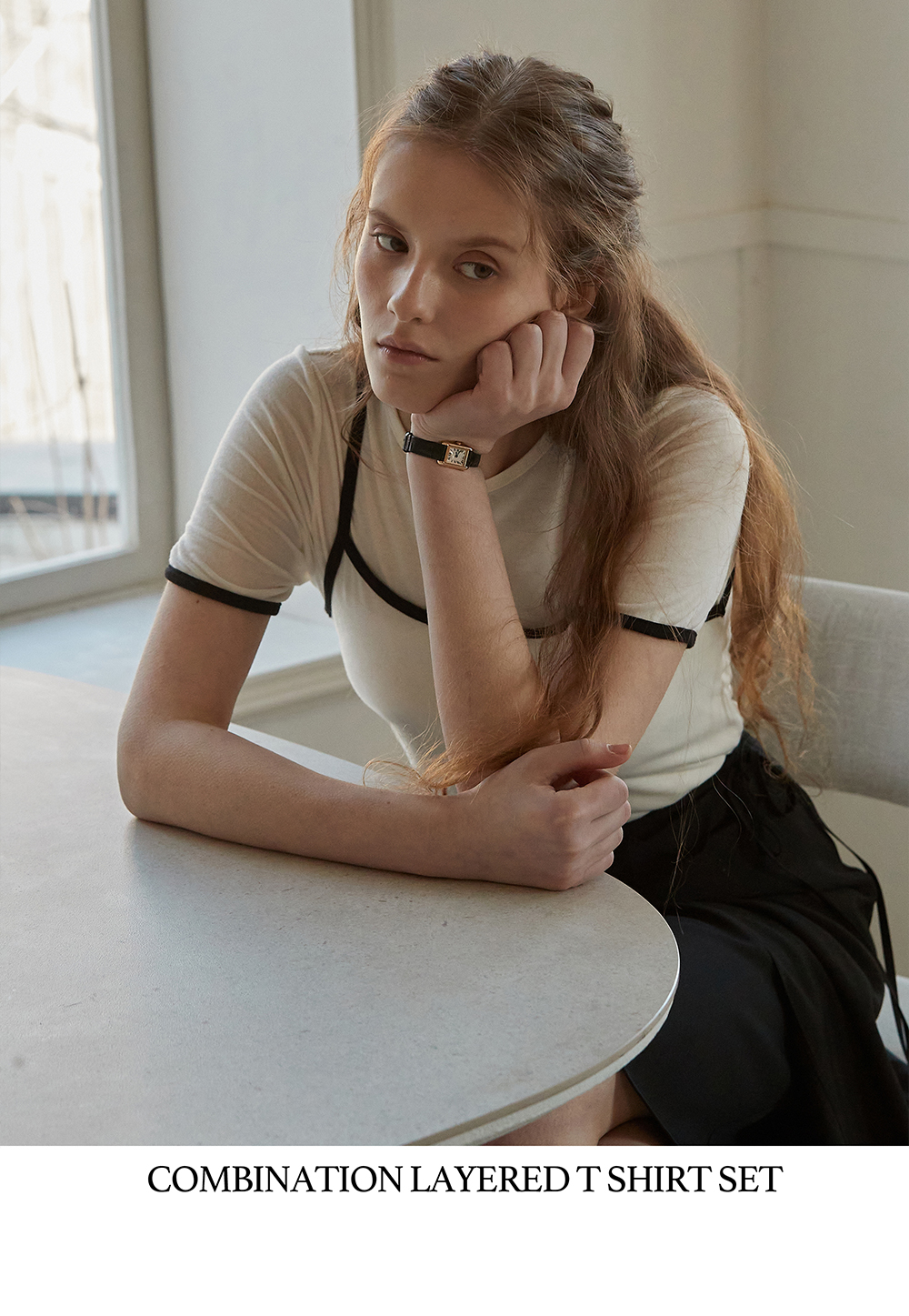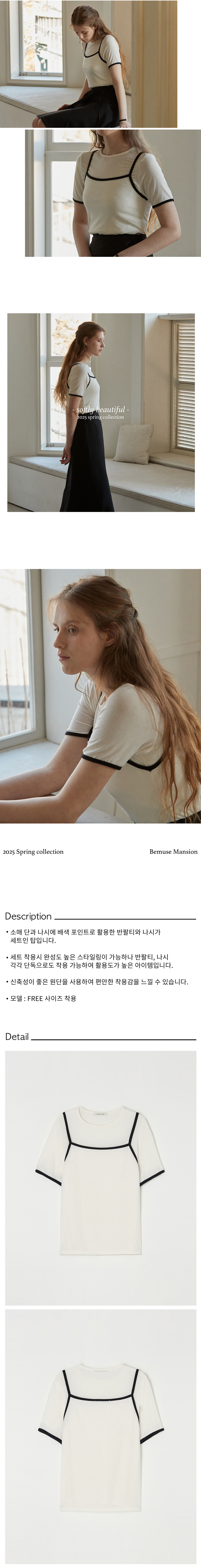 비뮤즈맨션 콤비네이션 레이어드 티 셔츠 세트 아이보리
