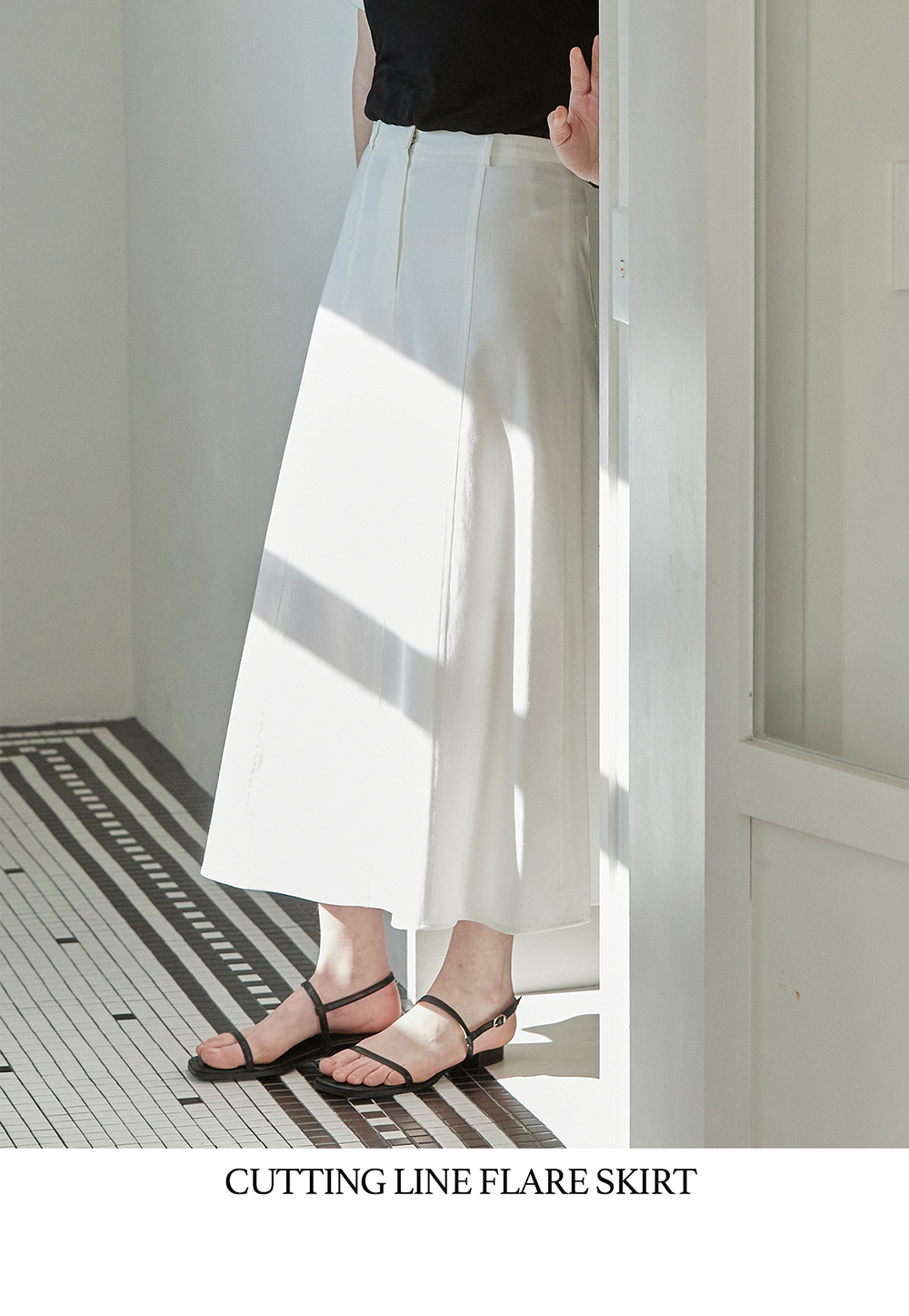 비뮤즈맨션 커팅 라인 플레어 스커트 화이트