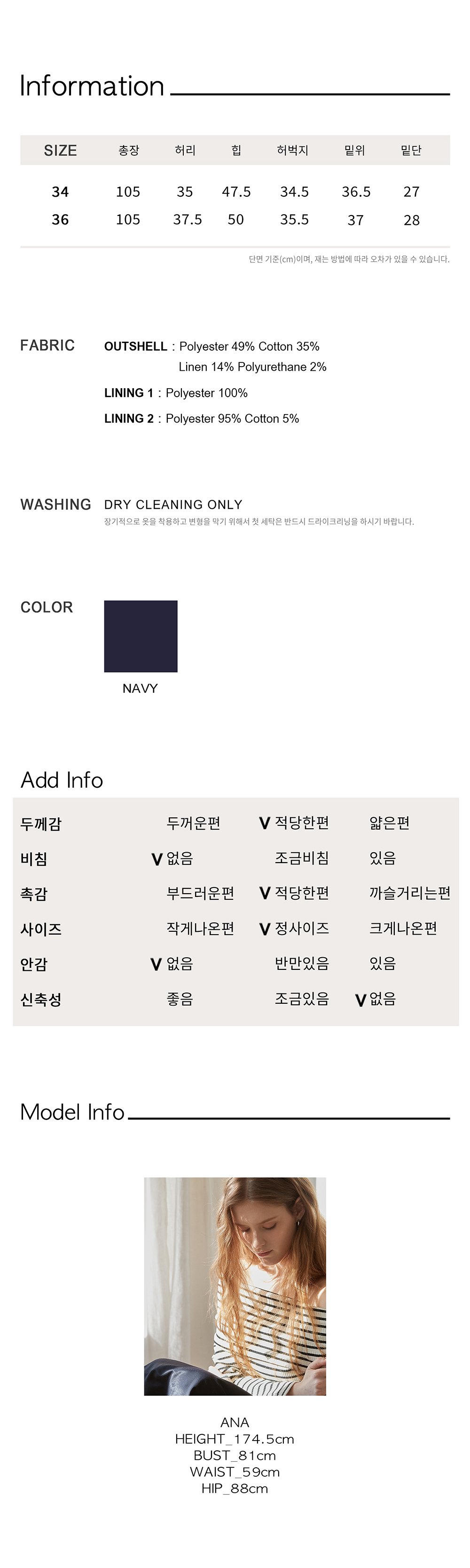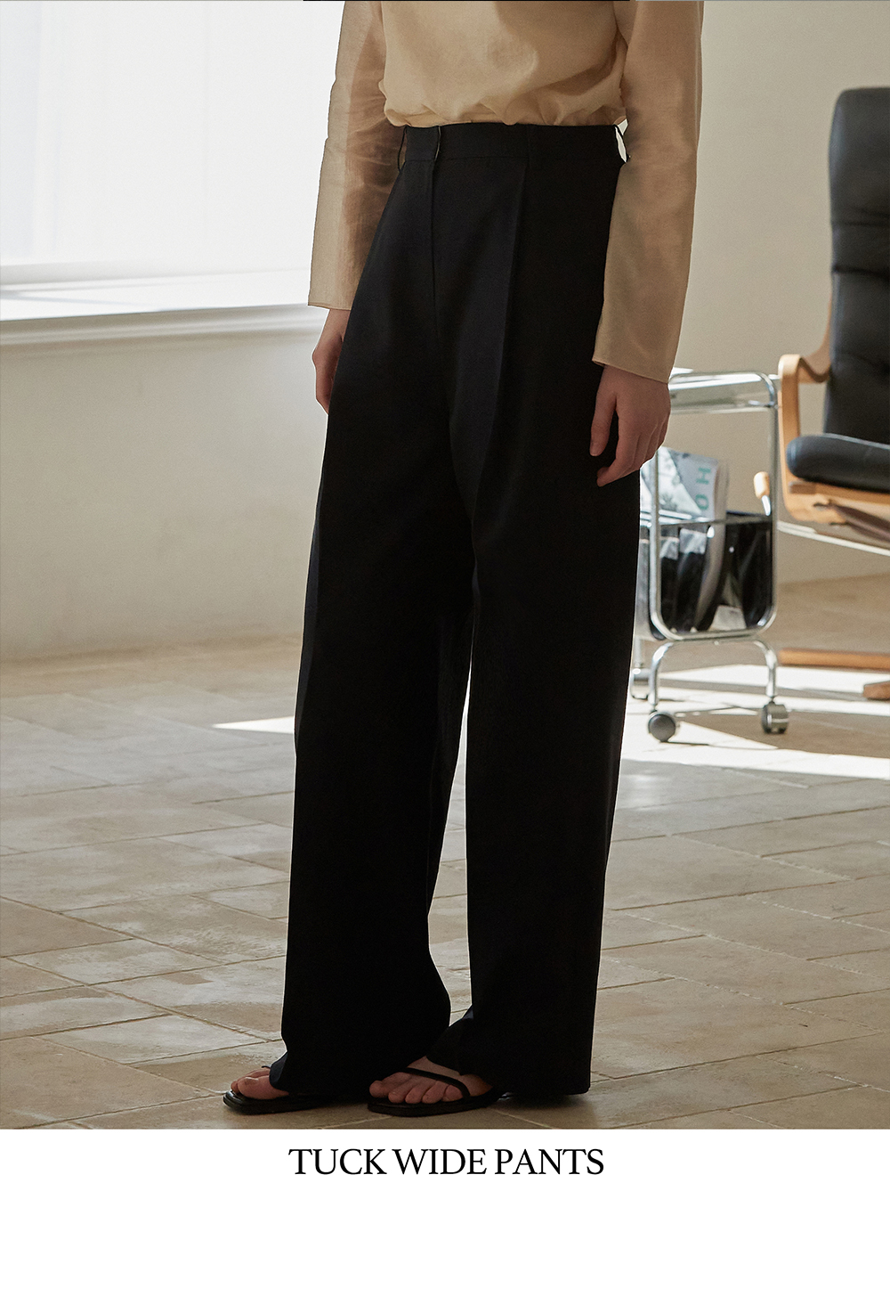비뮤즈맨션 턱 와이드 팬츠 네이비
