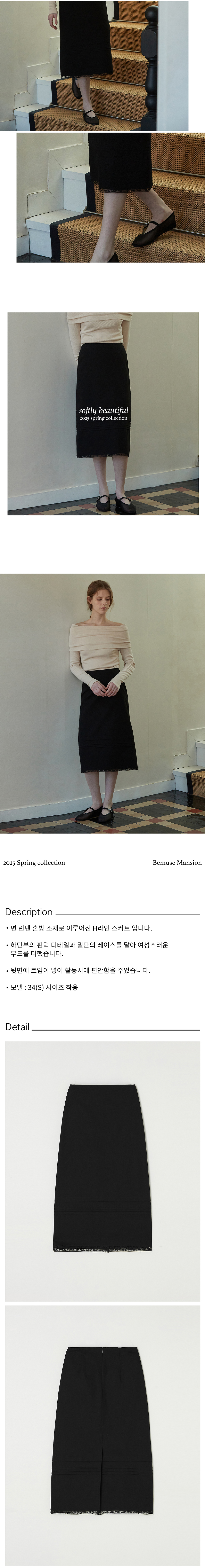 비뮤즈맨션 핀턱 레이스 H라인 스커트 블랙