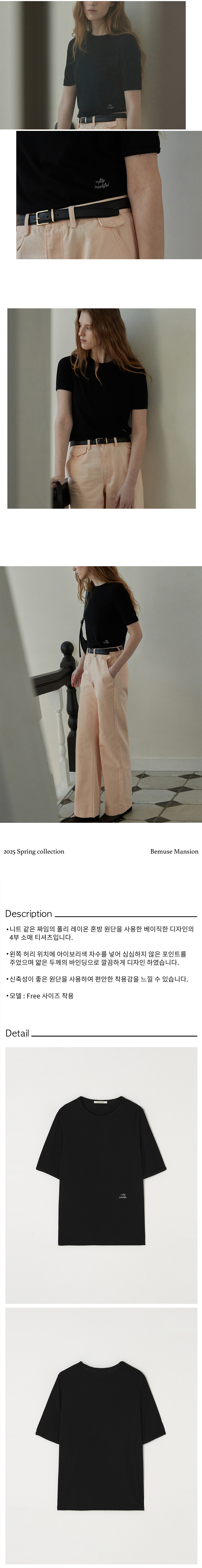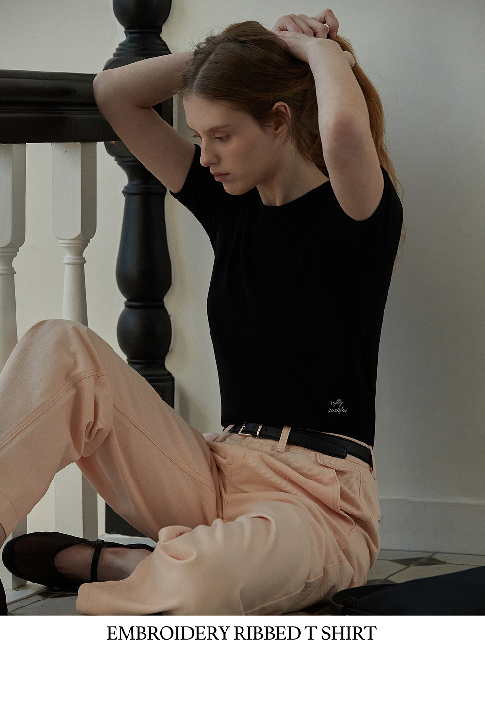 BEMUSE MANSION Embroidery ribbed t shirt Black