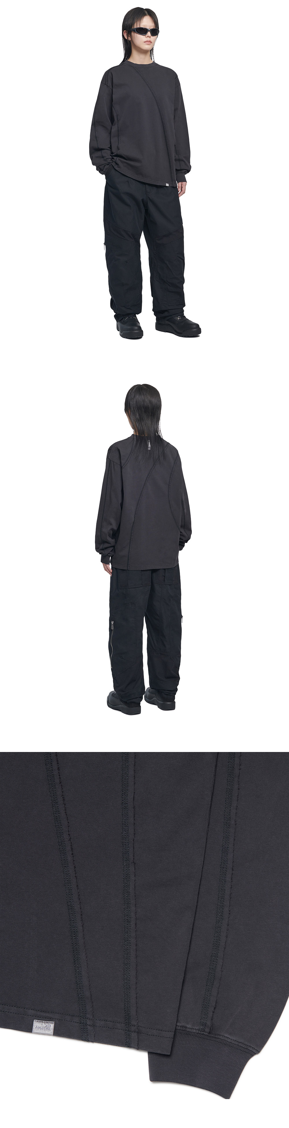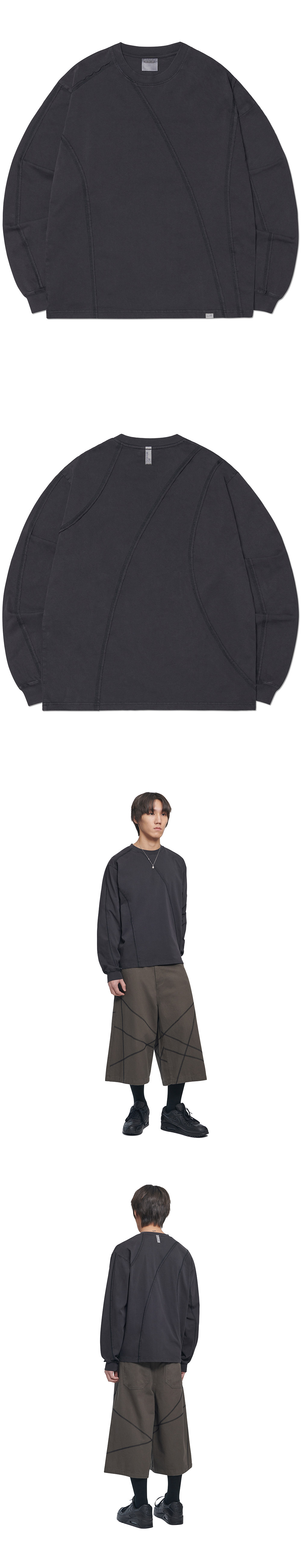 노매뉴얼 오버다이드 커팅 롱슬리브 티 워시드 블랙