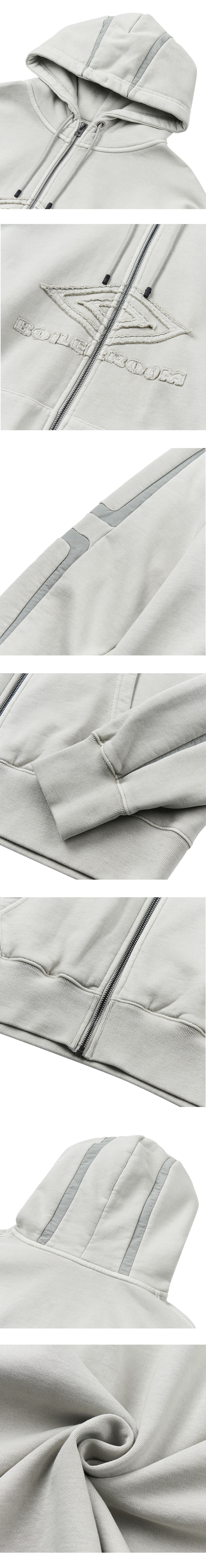 스포티하면서도 여유로운 느낌을 주는 보일러룸의 아플리케 후디 그레이입니다. - 부드러운 면 플리스 - 앞면에 어플리케 형식의 로고 플레이 - 오버사이즈 핏 - 박시한 핏 - 풀 지퍼 클로저