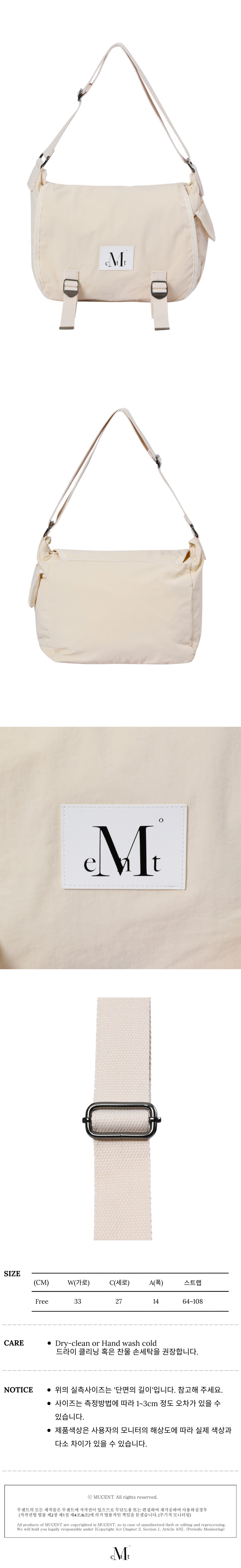 ┃Detail • 전면부 무센트 시그니처 로고 패치 • 실버 버클 디테일 포인트 • 자석 스냅 버튼 여밈 방식 • 사이드 원 포켓으로 수납력과 포인트 • 길이 조절 가능한 스트랩으로 핸드백, 숄더백, 크로스백으로 모두 활용 가능 • 내부에 위치한 2개의 미니 포켓으로 높은 실용성 • 가볍게 착용하기 좋은 무게와 사이즈 • 모든 코디에 매치 가능한 데일리 아이템 ┃Material : Polyester 100% ┃Care : Dry cleaning - 무센트는 말기의 행성인 이 지구에서 지속 가능한 옷들을 고민합니다. 우리는 신념을 소비하는 미닝아웃을 지지합니다.