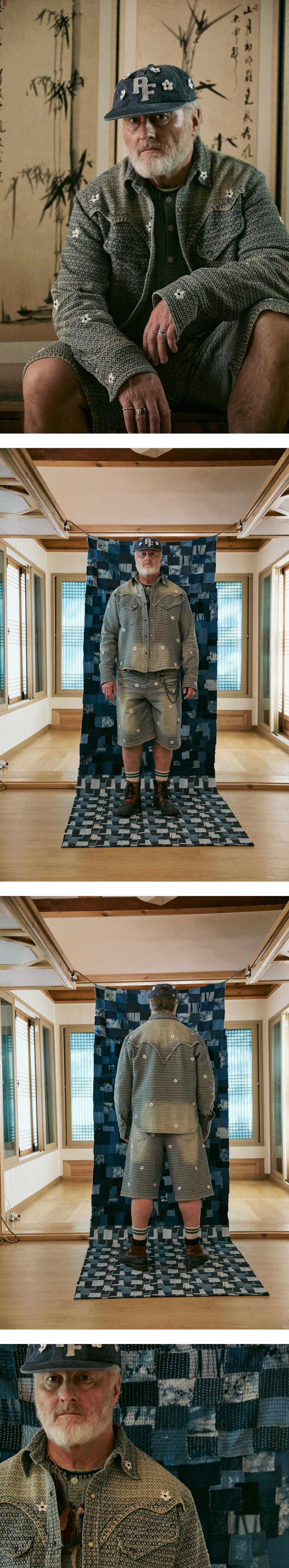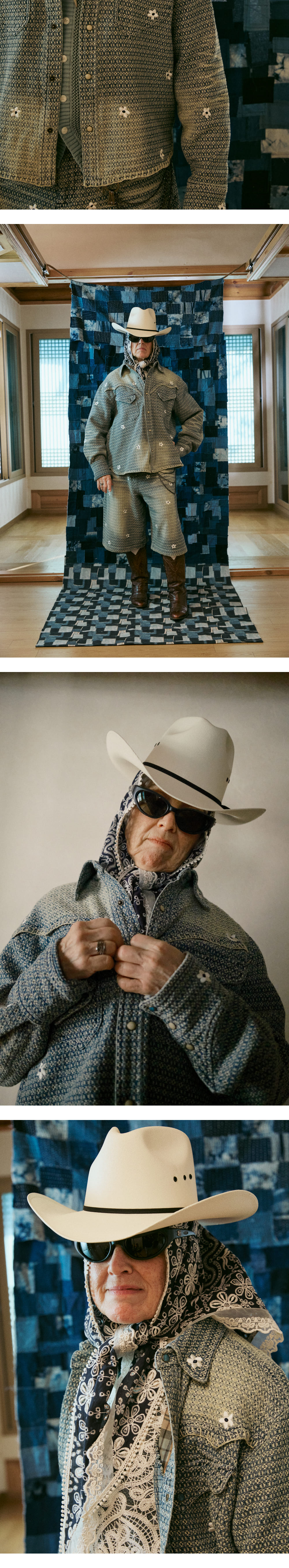 사시코를 연상시키는 쟈가드 데님 원단을 사용했습니다. 안감으로 워싱 공정에 반응하는 체크 원단을 사용했습니다. 강한 워싱 후, 다시 다잉으로 복합적인 공정을 거쳐 빈티지한 색감으로 완성했습니다. 날카로운 롱혼 타입의 웨스턴 셔츠의 선을 부드럽게 굴려 닉기어의 시그니쳐 플라워 패턴 자수와 조화롭게 어울립니다. 셔츠와 자켓의 중간에 해당하는 패턴으로, 소매는 초어자켓에서 볼 수 있는 형태이며 자켓과 같이 품을 늘리고 총장을 줄였습니다. MERROW사의 특수 봉제기계로 요크, 소매단, 밑단을 마감했습니다.