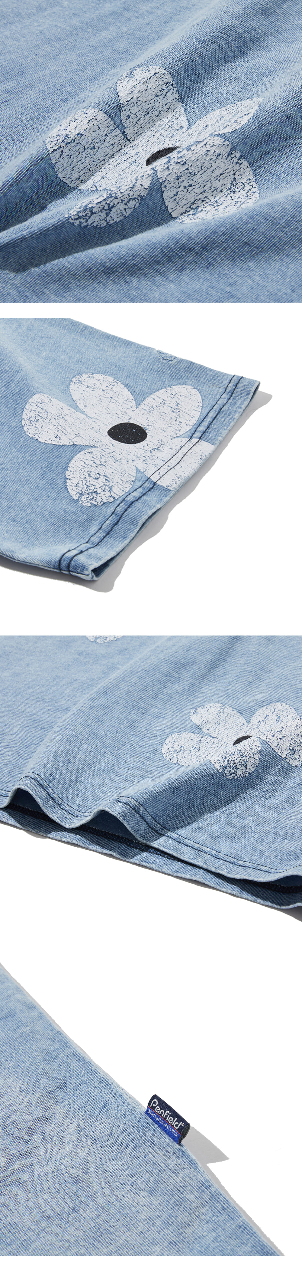 펜필드 X 닉기어 콜라보 플라워 패턴 크랙 포켓 티셔츠입니다. 닉기어의 시그니쳐 플라워 패턴이 전체적으로 프린트되어있습니다. 인디고 원사를 사용, 강한 워싱과정과 틴트 다잉으로 복합적인 공정을 거쳐 빈티지한 색감으로 완성했습니다.