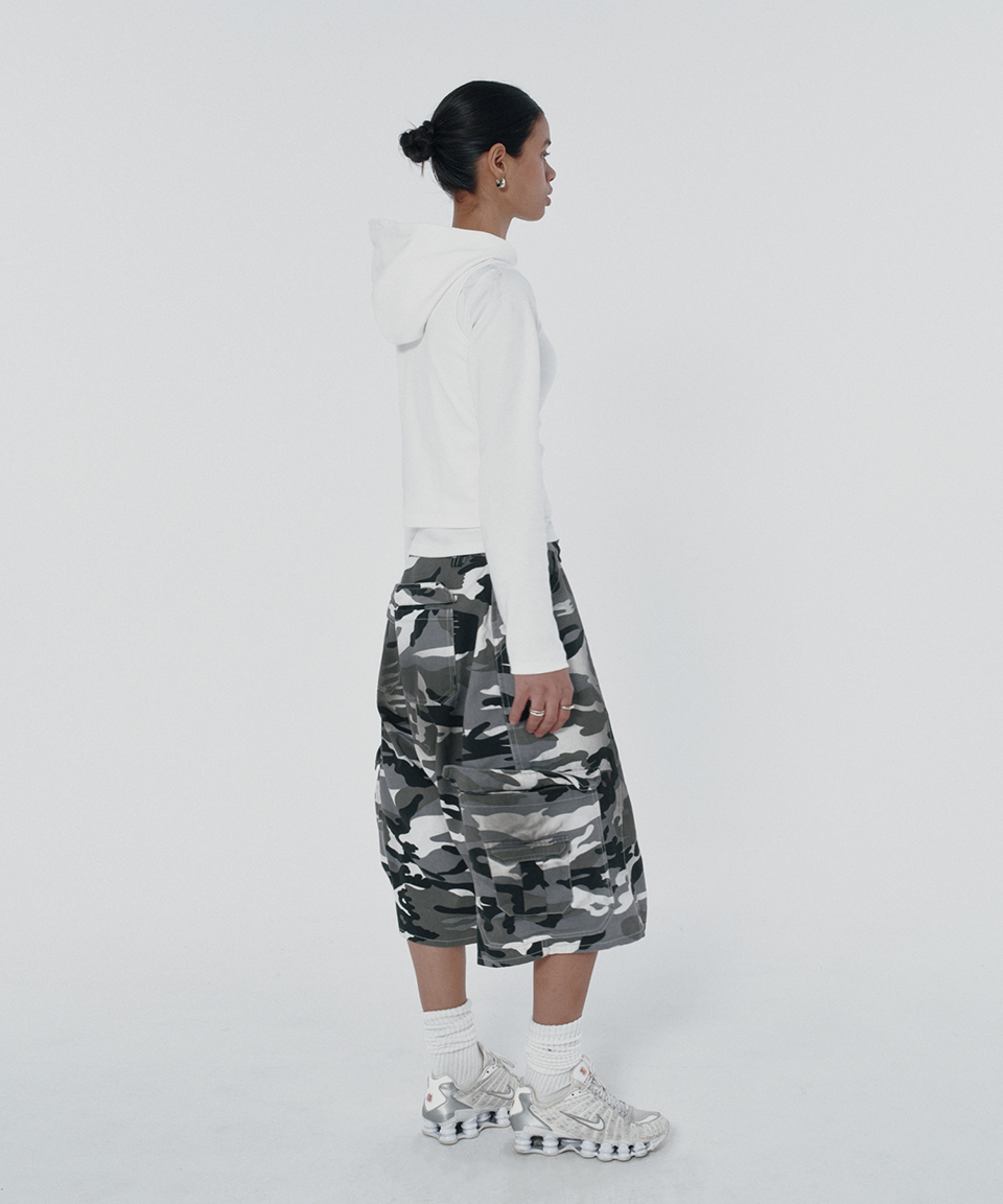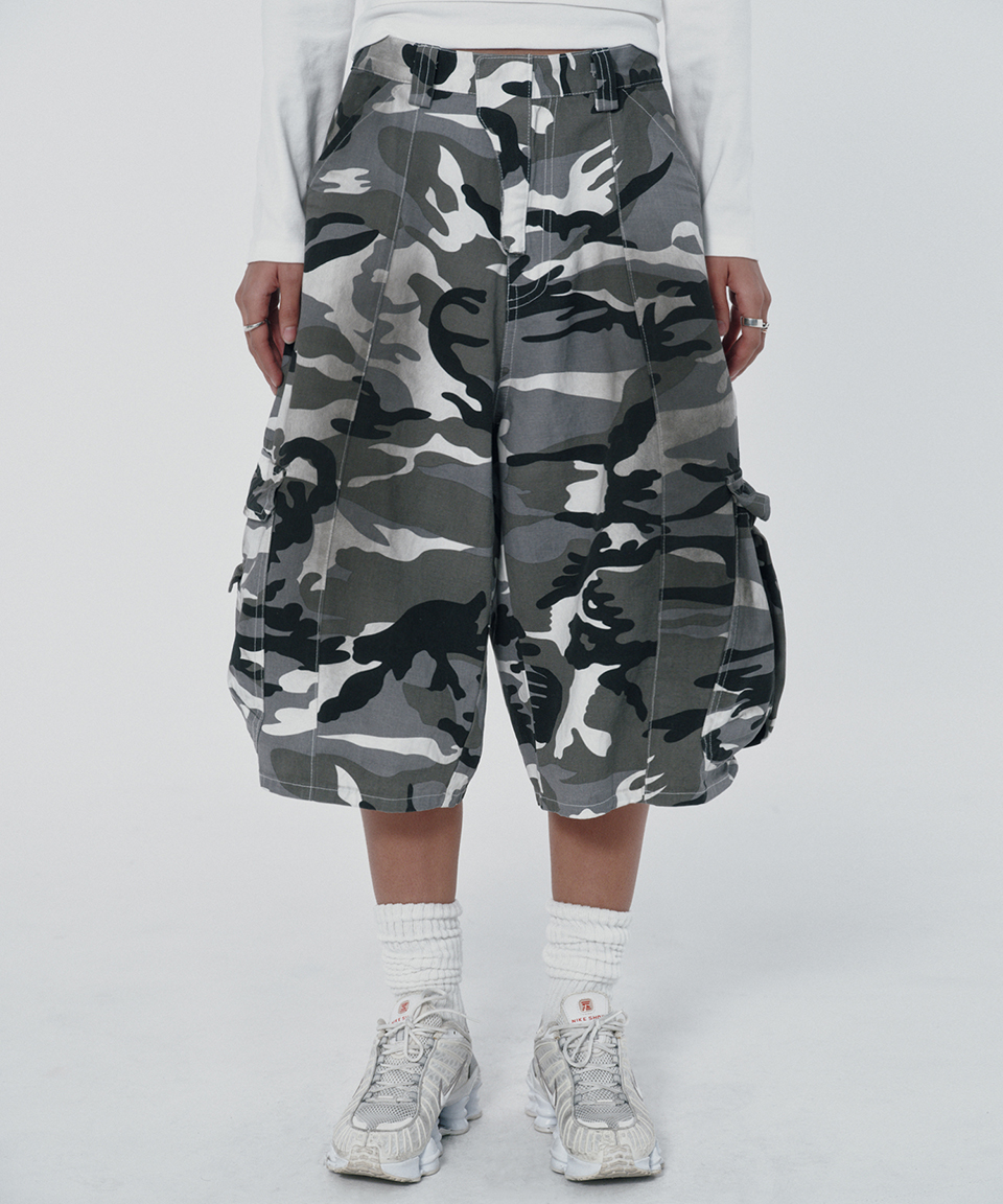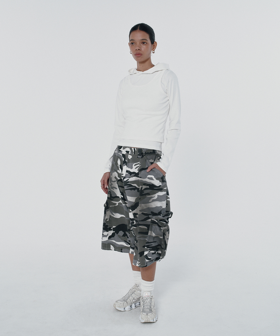스웨이드 와이드 카고 쇼츠 화이트 카모