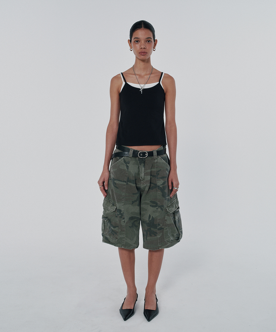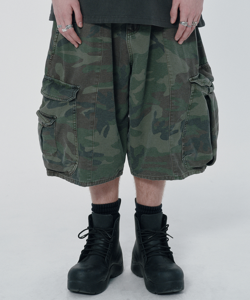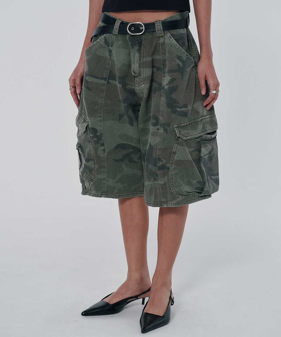 스웨이드 와이드 카고 쇼츠 그린 카모