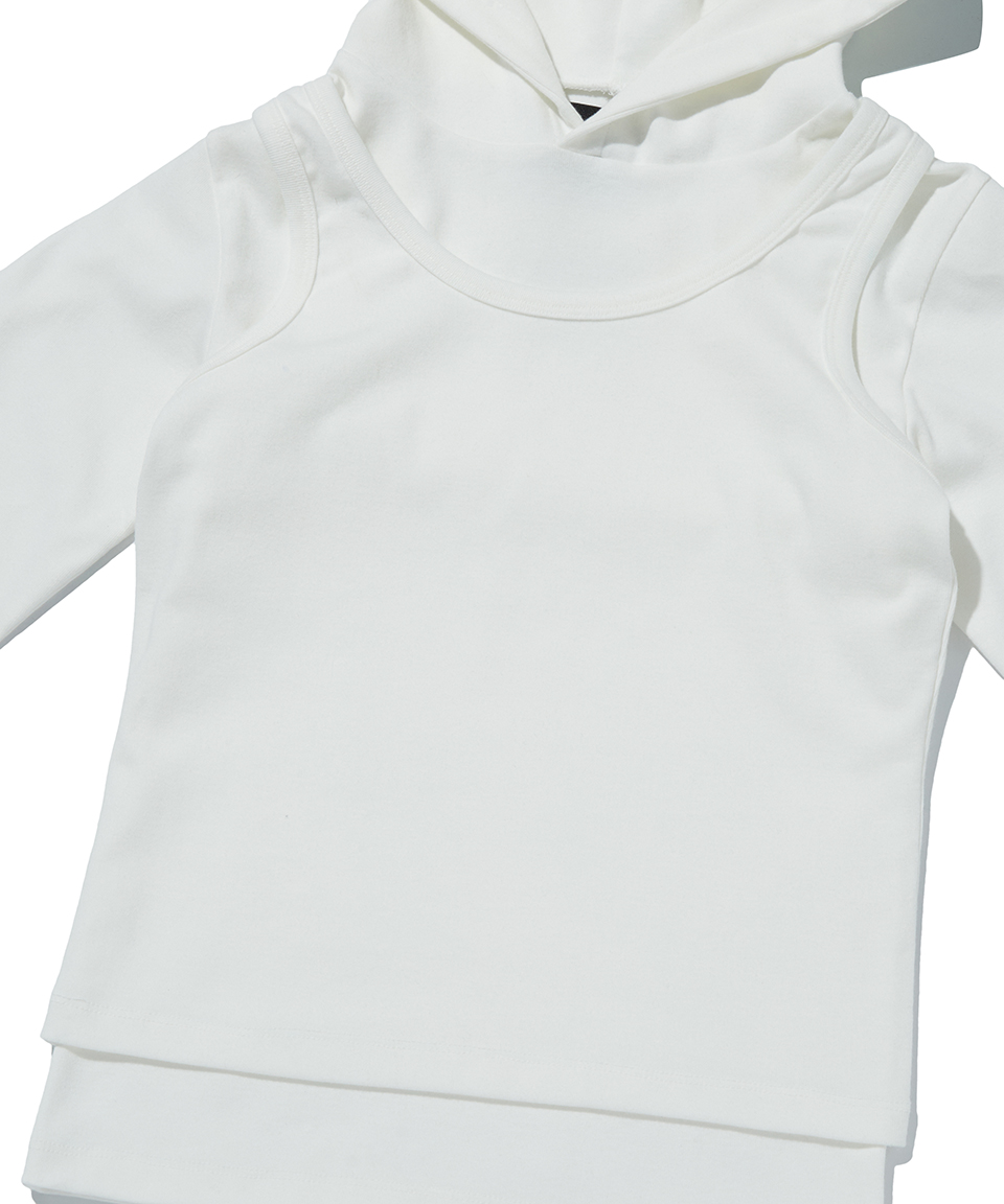 스웨이드 레이어드 후디 화이트