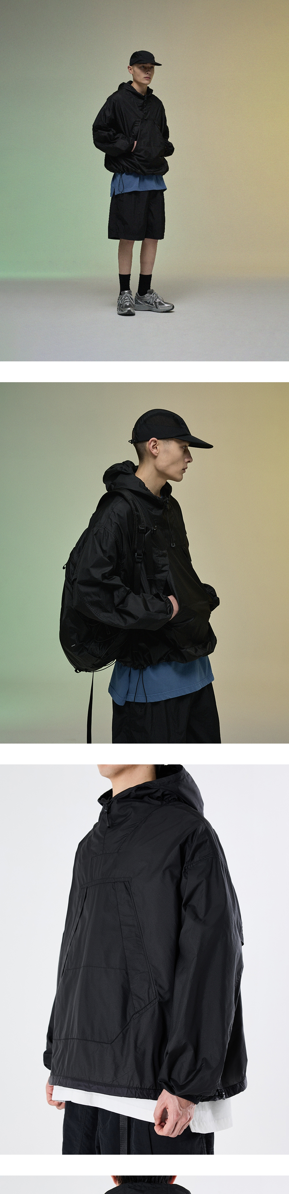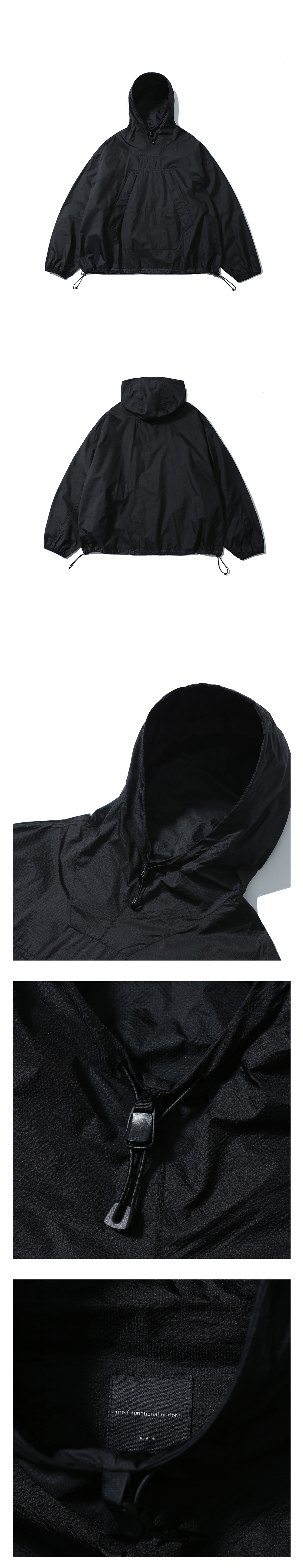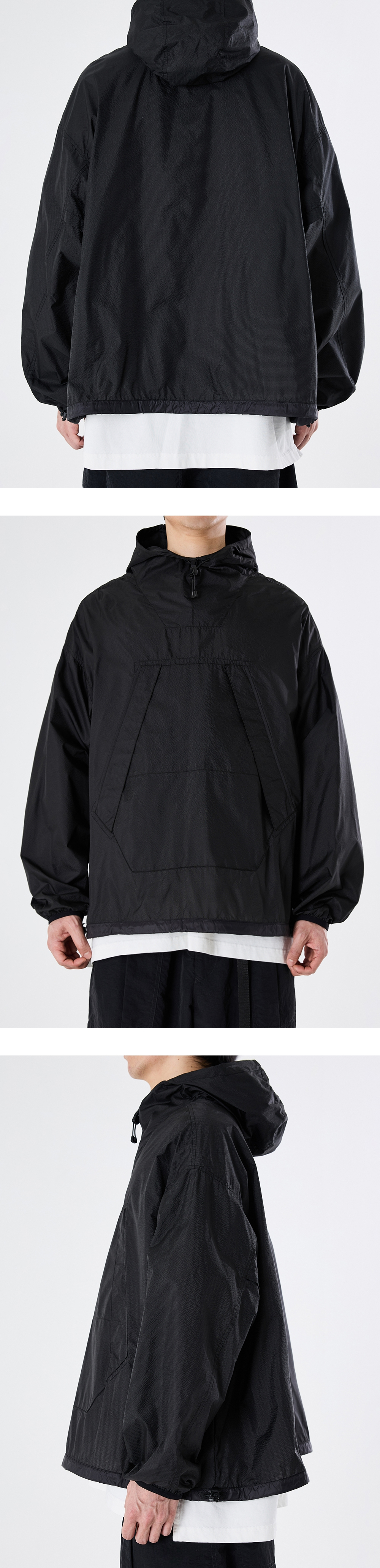 가볍고 휴대성이 좋은 풀오버 아노락 · 여유 있는 편안한 실루엣. · 가볍고 얇은 립스탑 나일론 원단 사용. · 여밈이 없는 풀오버 디자인. · 덮개가 있는 넉넉한 사이즈의 워머 포켓. · 네크라인에 스토퍼로 조절이 가능한 후드 사양. · 신축성 있는 밴드로 바인딩 처리된 커프스 사양. · 실루엣 조절이 가능한 밑단 스트링과 스토퍼 사양. · 통풍이 가능한 겨드랑이 부분 디테일.