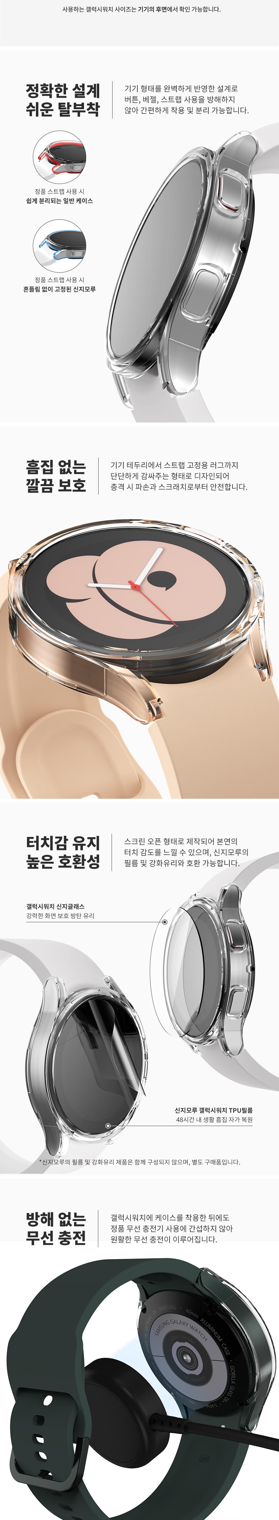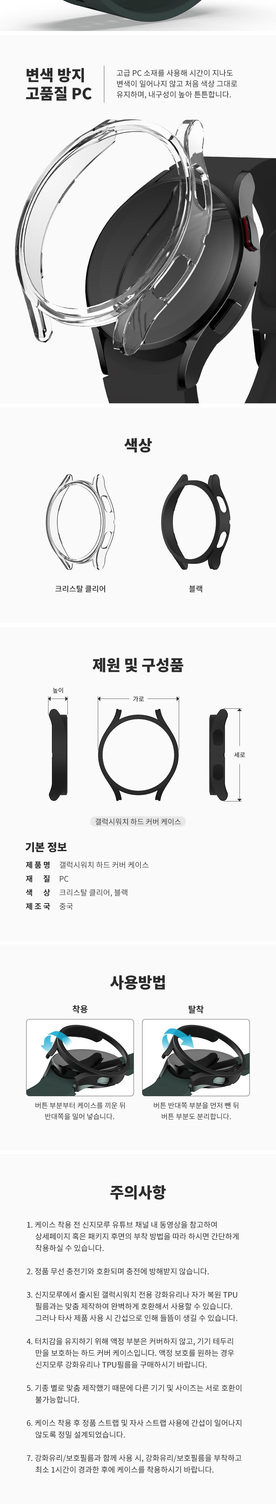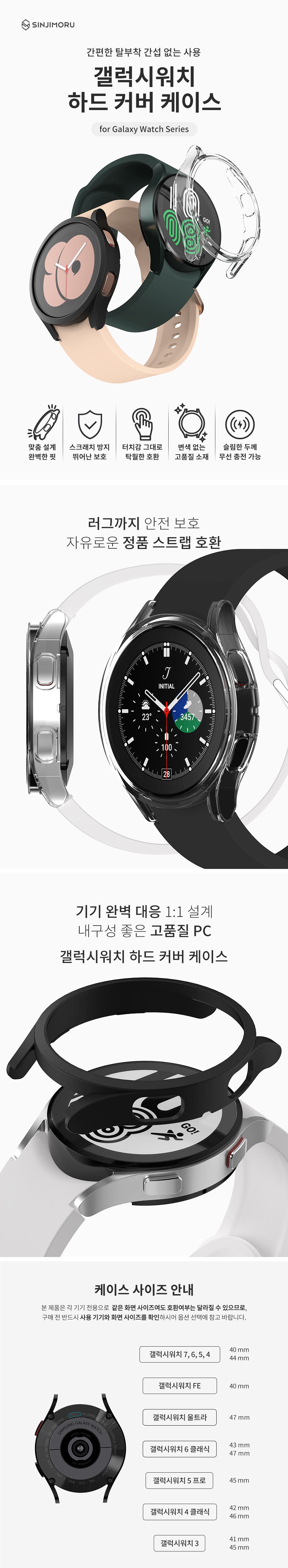 신지모루 갤럭시워치 하드 커버 케이스 7/FE/6/5/4/3세대 울트라 클래식 프로 액정보호 강화유리 블랙