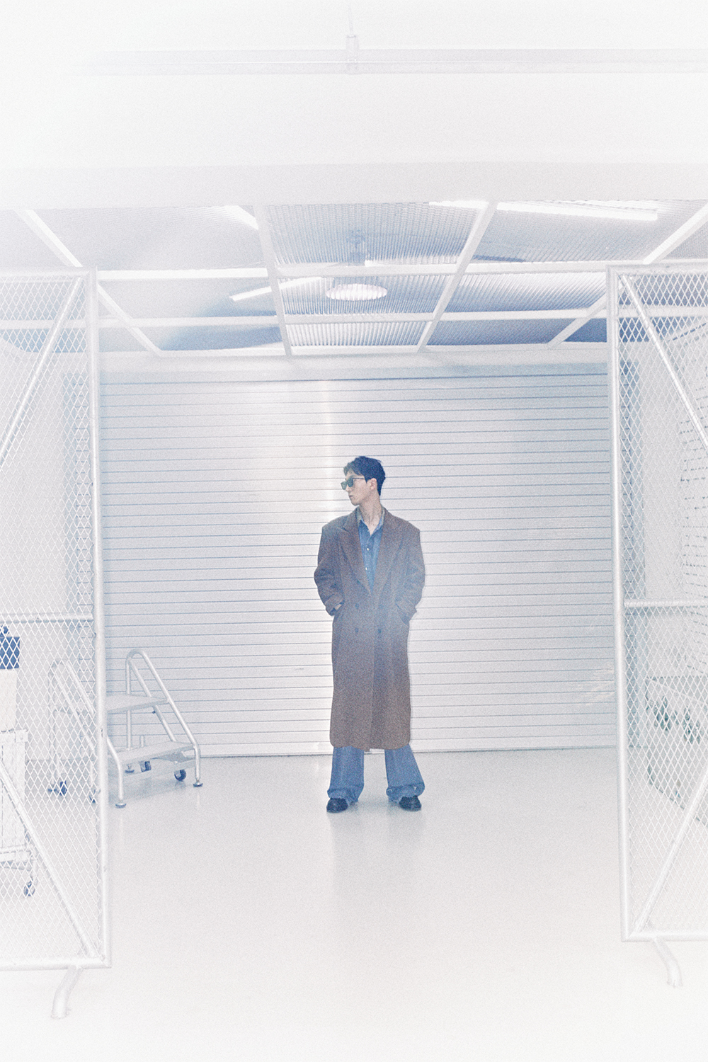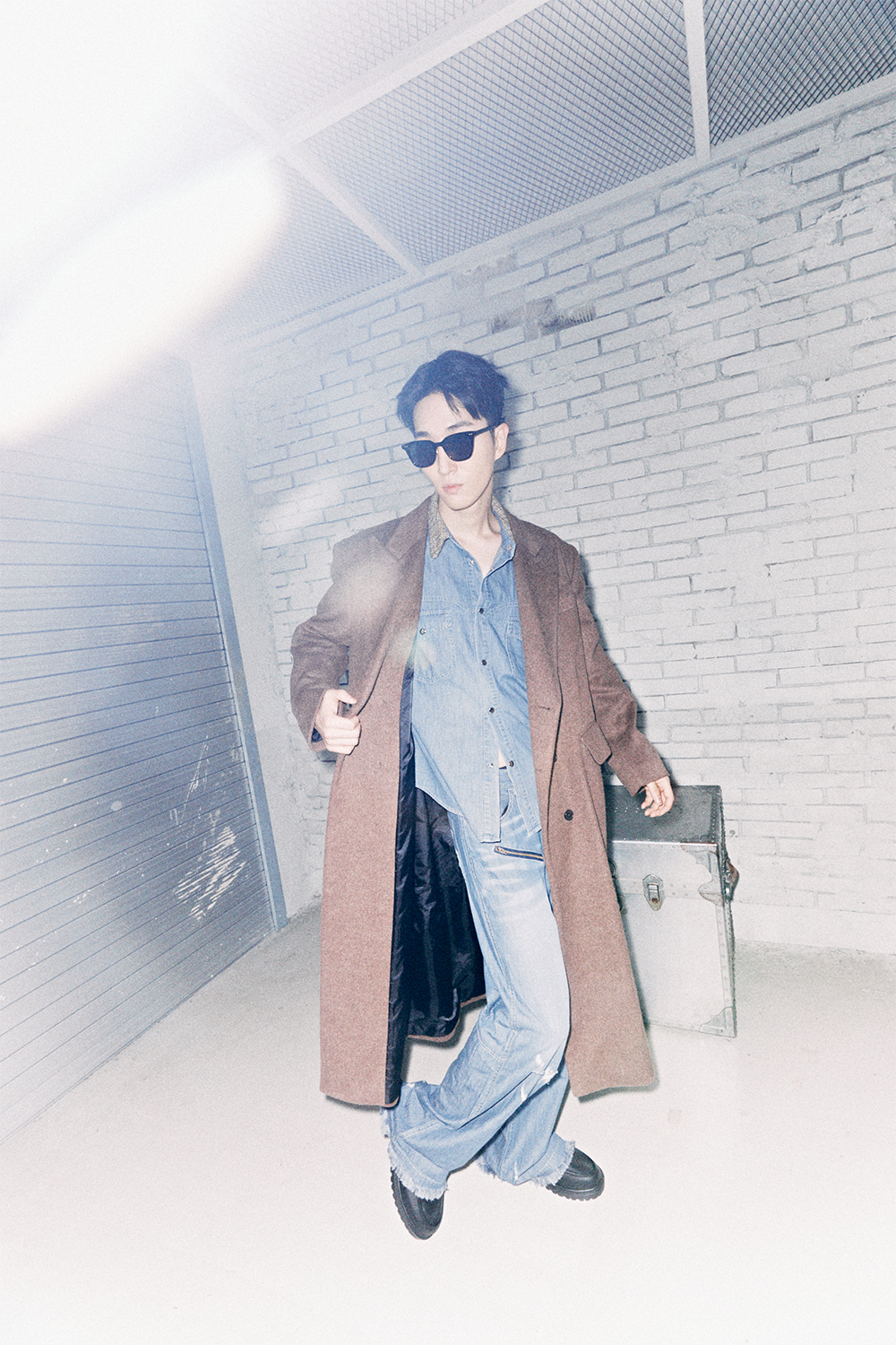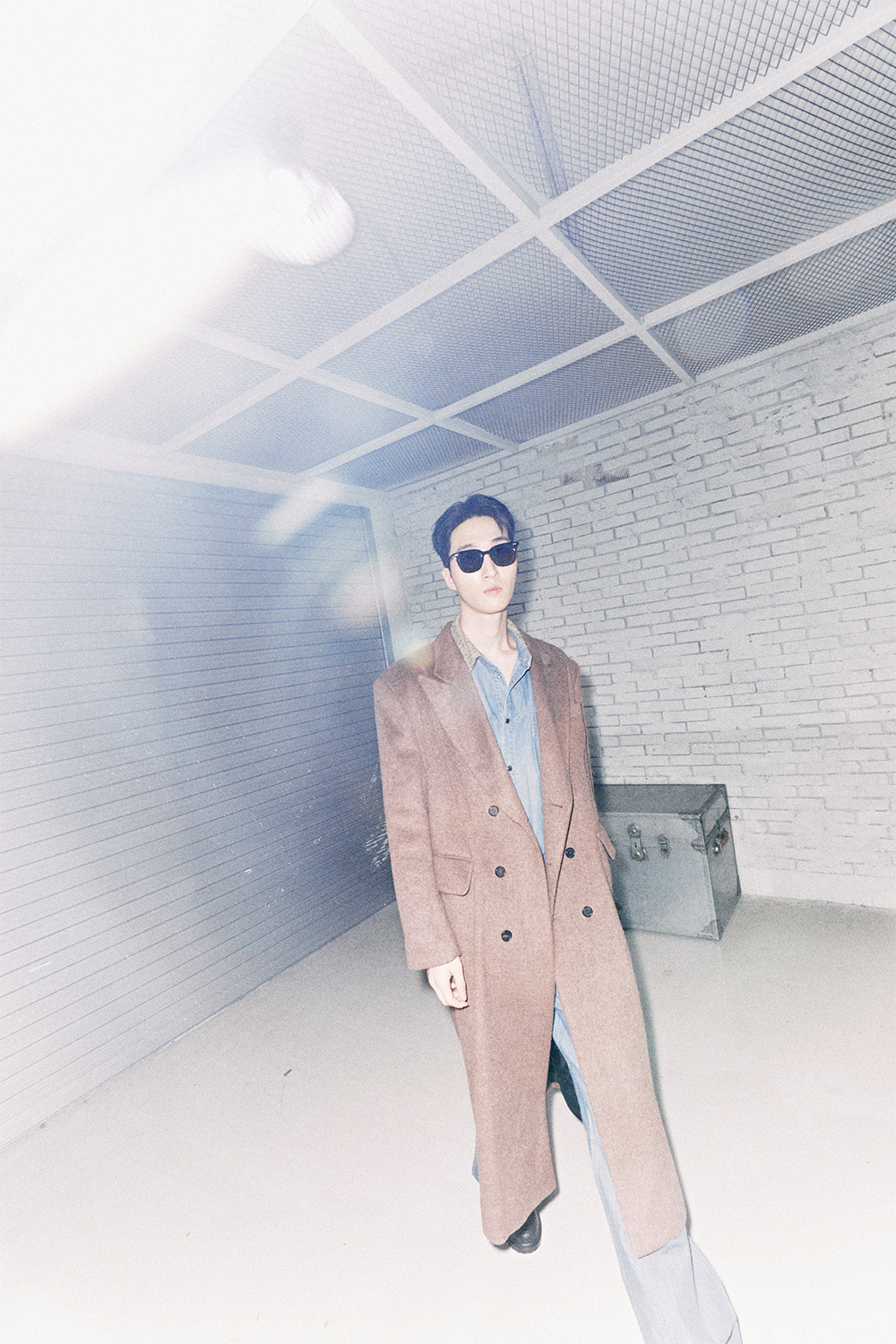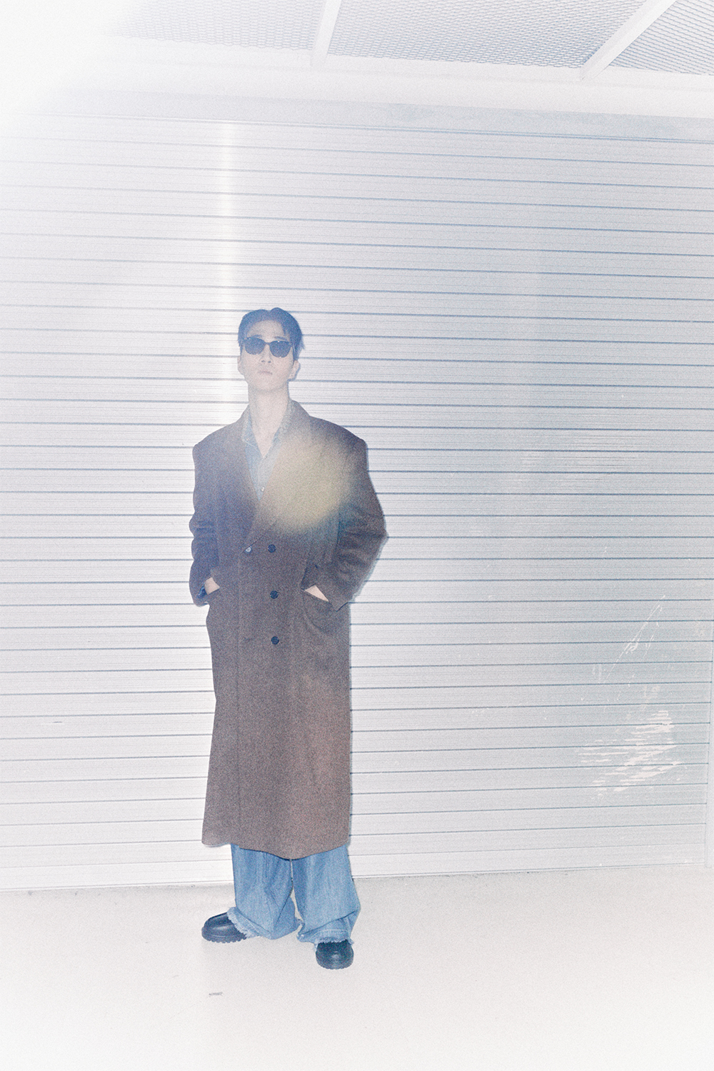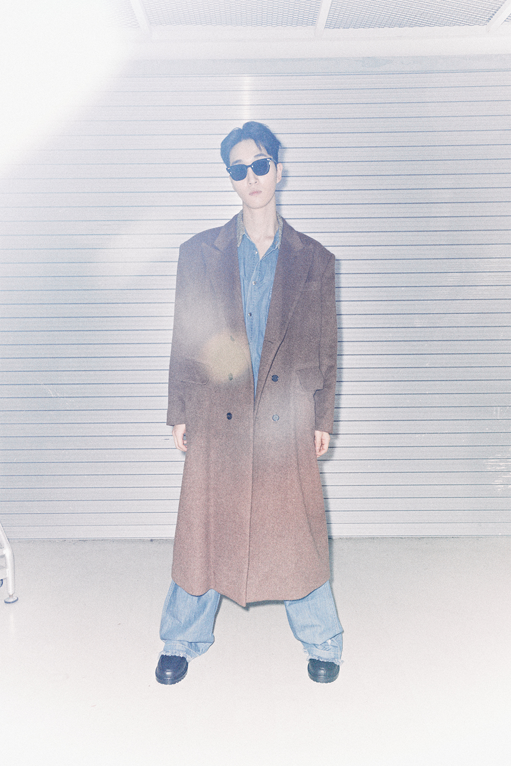 블루 선플라워 모헤어 더블 브레스티드 롱 코트